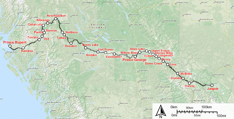 종점 | 브리티시컬럼비아주 프린스루퍼트 |