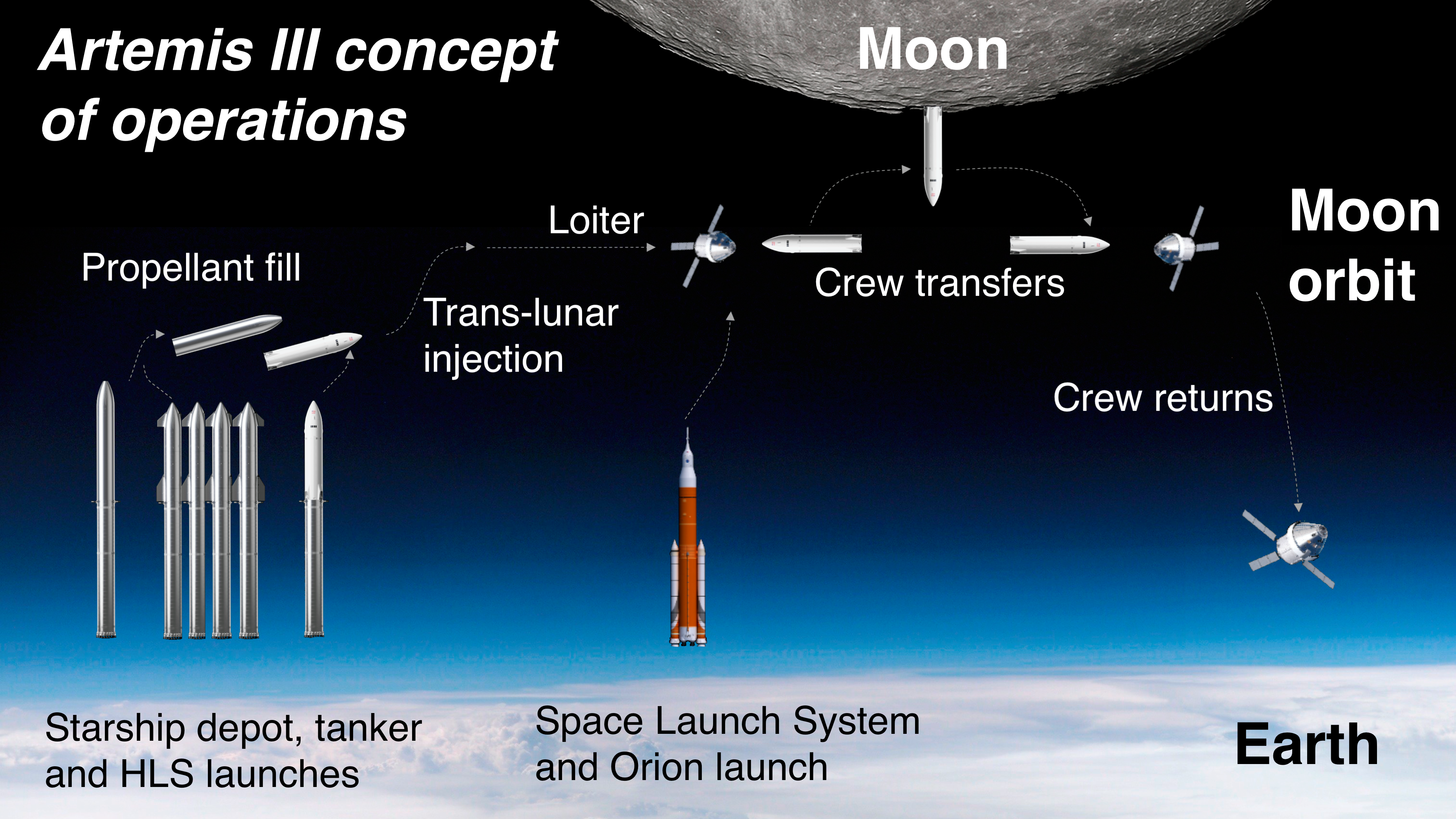 2020년 4월, 스타십은 NASA의 달 유인 착륙 시스템 중 하나로 선정되어 아르테미스 프로그램의 재정 지원을 받게 되었다.