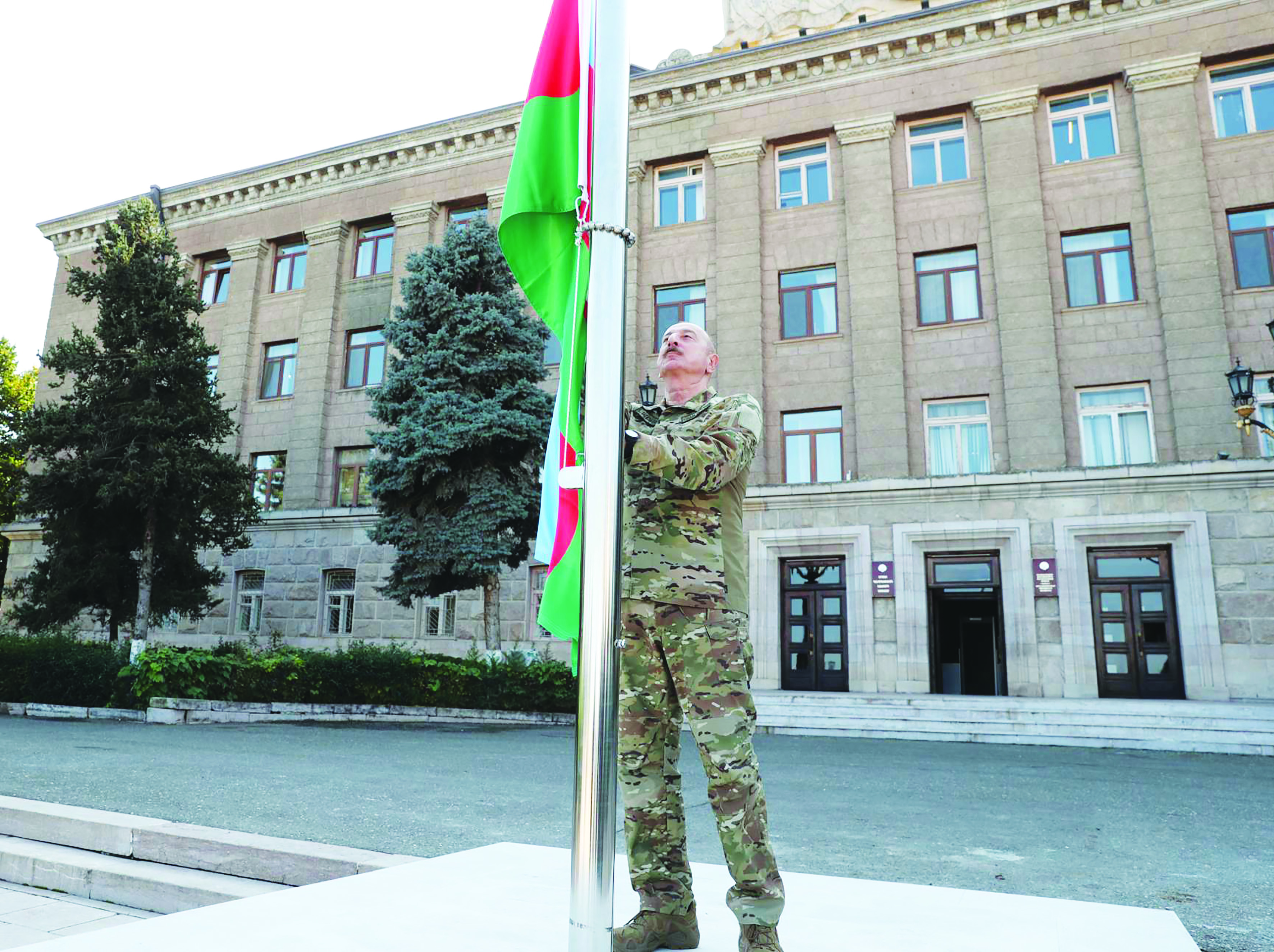 アゼルバイジャン大統領 ナゴルノカラバフ訪問 国旗を掲揚