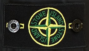 스톤 아일랜드는 왼쪽 팔 위쪽 소매에 단추로 고정하는 나침반 패치로 잘 알려져 있다.[21] 초기 패치는 녹색 가장자리였으나 2000년경부터 검은색 가장자리로 바뀌었다. 새 천년을 기념하기 위해 제작된 특정 재킷에는 희귀한 '흰색 배지'가 달려있기도 하다. 스톤 아일랜드는 자체 개발한 재료를 사용한 재킷에 흰색 배지를 사용하며, 빛을 반사하는 수천 개의 작은 유리 조각을 사용하는 "액체 반사" 재킷과 같은 새로운 디자인을 선보이기도 한다.