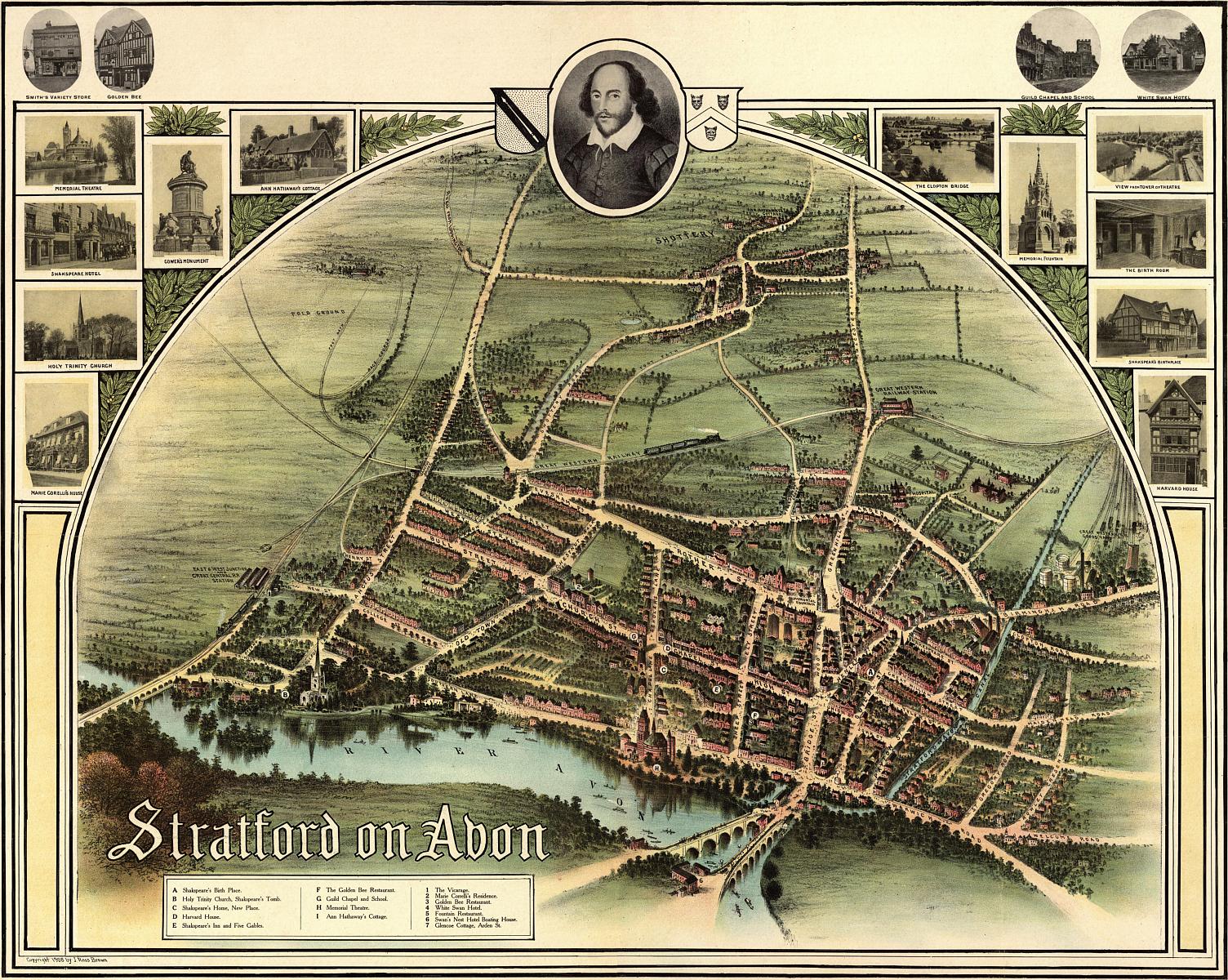 스트랫퍼드어폰에이번은 잉글랜드 워릭셔에 위치한 중세 상업 도시로, 앵글로색슨족의 기원을 가지며, 1196년에 최초의 인가장을 받았다. 1769년 데이비드 개릭이 주최한 셰익스피어 기념제 이후 관광 산업이 발전했으며, 셰익스피어의 생가와 로열 셰익스피어 극단 등 셰익스피어 관련 시설이 많아 관광지로 유명하다. 2021년 인구 조사에 따르면 3만 명 이상이 거주하며, 런던과 버밍엄에서 철도로 연결된다.