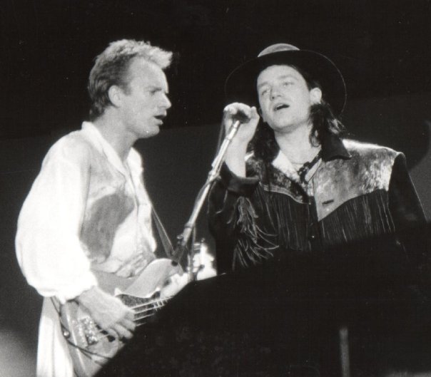 1986년 뉴저지에서 열린 Conspiracy of Hope 콘서트에서 스팅과 보노