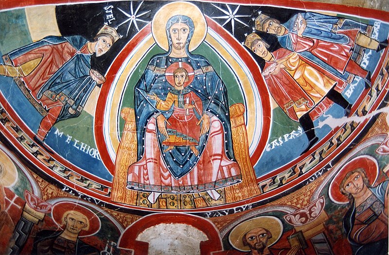 타율의 산타 마리아(Santa Maria Taüll) 성당의 앱스, 12세기 초 예이다 현 발 데 보이의 카탈루냐 프레스코화. 현재는 카탈루냐 국립 미술관에 소장되어 있다.