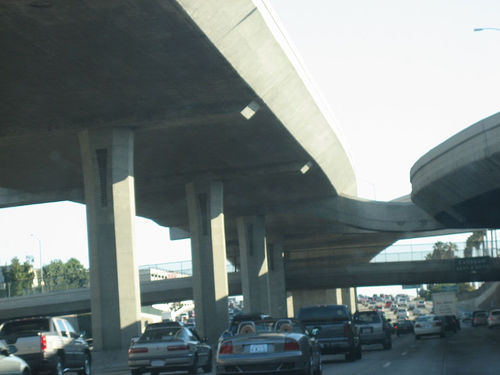 많은 고속도로 장면은 촬영 당시 건설 중이었던 해리 프레거슨 인터체인지를 포함하여 캘리포니아의 105번 주간 고속도로와 110번 주간 고속도로에서 촬영되었다. 데 봉은 현장 답사 중 공사가 덜 끝난 고속도로 구간을 발견하고 각본에 버스 점프 장면을 추가하는 것을 제안했다.[18] 버스가 미완성된 고속도로를 뛰어넘는 장면은 차량을 들어 올리기 위해 램프를 사용하여 촬영되었다.[24] 컴퓨터 생성 이미지(CGI)는 나중에 소니 픽처스 이미웍스의 도움을 받아 고속도로에 틈이 있는 것처럼 보이도록 제작되었다.[22]