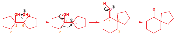 활성화된 탄소 중심의 이중 알킬화를 통해 스피로고리 코어를 제조할 수 있다. 이중 알킬화 그룹은 종종 1,3- 또는 1,4- 할로겐화물이다.[7] 1,5-다이리튬펜탄과 같은 다이리튬 시약을 사용하기도 한다.[8] 고리형 카베노이드로의 사이클로프로페인화를 통해 사이클로프로페인 고리를 포함하는 스피로사이클을 생성할 수 있다.[9]피나콜-피나콜론 재배열과 같은 다양한 재배열 반응을 통해 스피로 화합물을 제조할 수 있다.[2] 아스피로[4.5]데칸의 제조에 사용된다.[10]