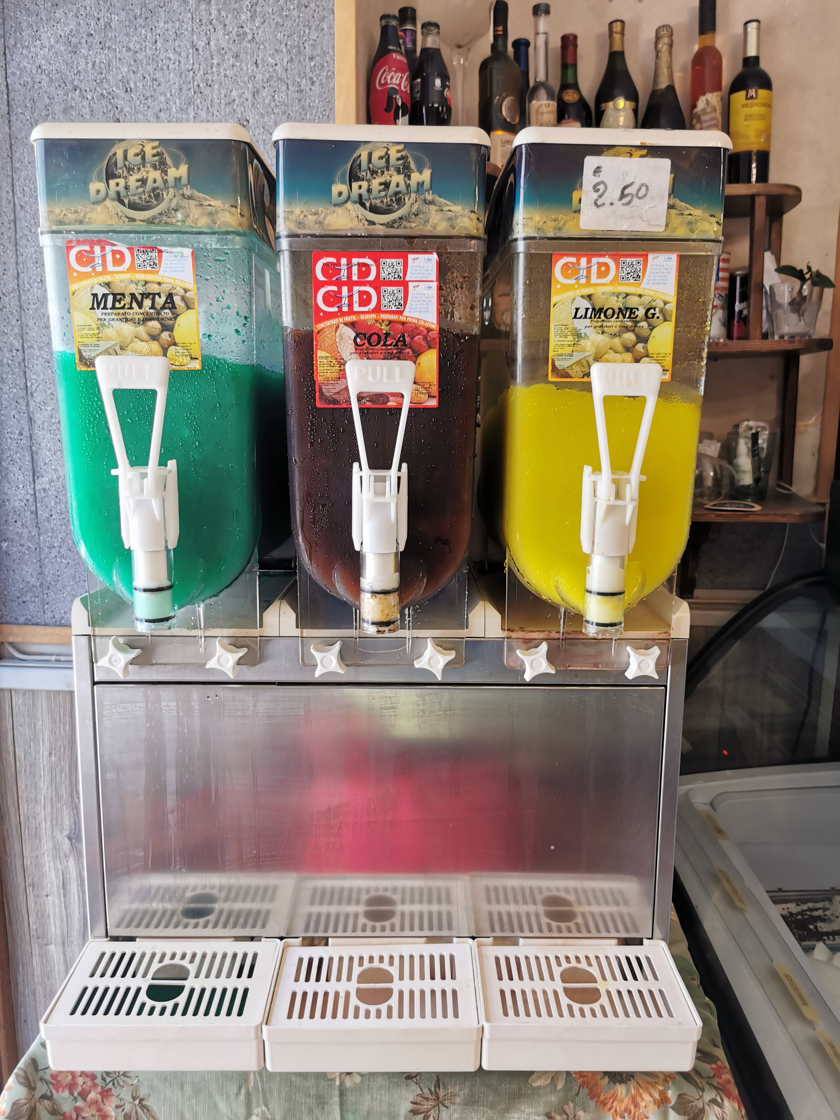 탄산 슬러시는 일반적인 소다수 자판기와 비슷한 기계로 만들어진다. 농축된 향 시럽은 정수된 물과 혼합된 다음 이산화탄소를 주입하여 탄산화한다. 이 혼합물은 냉동 코일로 둘러싸인 실린더에 주입된다. 실린더 벽에 얼어붙은 혼합물은 회전하는 데셔(dasher)에 의해 긁어내지며, 데셔는 혼합물을 균일하게 섞이게 한다.[3] 이 과정을 통해 혼합물이 균일하게 섞이고, 미세한 얼음 결정이 형성된다.3. 2. 비탄산 슬러시 제조 과정