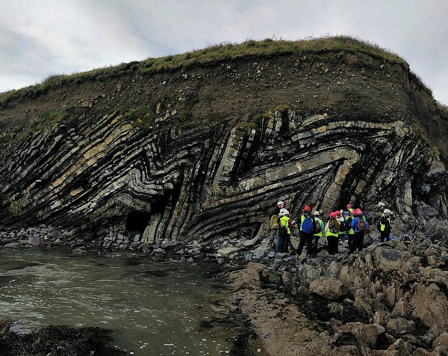 - 사면붕괴 습곡: 사면붕괴가 굳지 않은 퇴적물에서 형성될 때, 특히 선단부에서 퇴적물이 이동하는 동안 습곡이 발생하는 경우가 많다. 사면붕괴 습곡의 비대칭성은 퇴적암층의 고(古)사면 방향을 결정하는 데 사용될 수 있다.[16]