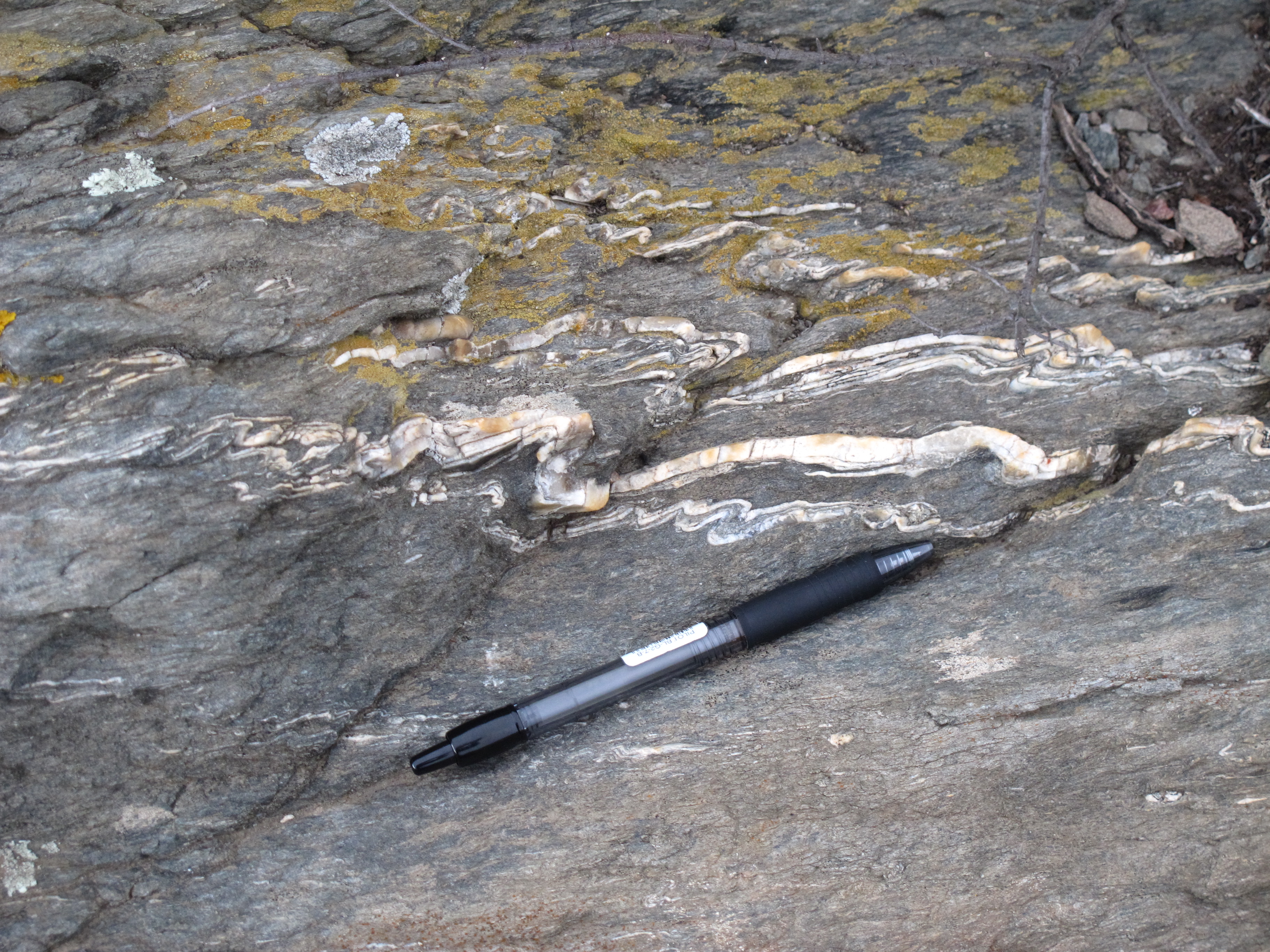 암석층이 힌지(경첩부)에서 접힐 때 힌지대는 큰 변형을 겪으며, 이로 인해 층 사이에 빈 공간이 만들어진다. 이러한 공간은 특히 내부 수압이 외부보다 낮을 경우 광물 침전이 일어나기 쉽게 만든다. 수백만 년 동안 이 과정은 넓은 암석에서 미량 광물을 모아 매우 집중된 지점에 퇴적시키는데, 이는 광맥을 형성하는 메커니즘이 될 수 있다.[23]