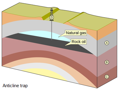 향사 구조 함정은 암석의 습곡 작용으로 형성된다. 예를 들어, 투과성이 좋은 사암층이 투과성이 낮은 셰일층으로 덮여 있는 지층이 향사 구조로 습곡되면 탄화수소 함정이 형성될 수 있으며, 석유가 습곡의 정점에 축적된다. 대부분의 향사 구조 함정은 측면 압력으로 인해 암석층이 습곡되어 형성되지만, 퇴적물의 다짐으로도 형성될 수 있다.[24]