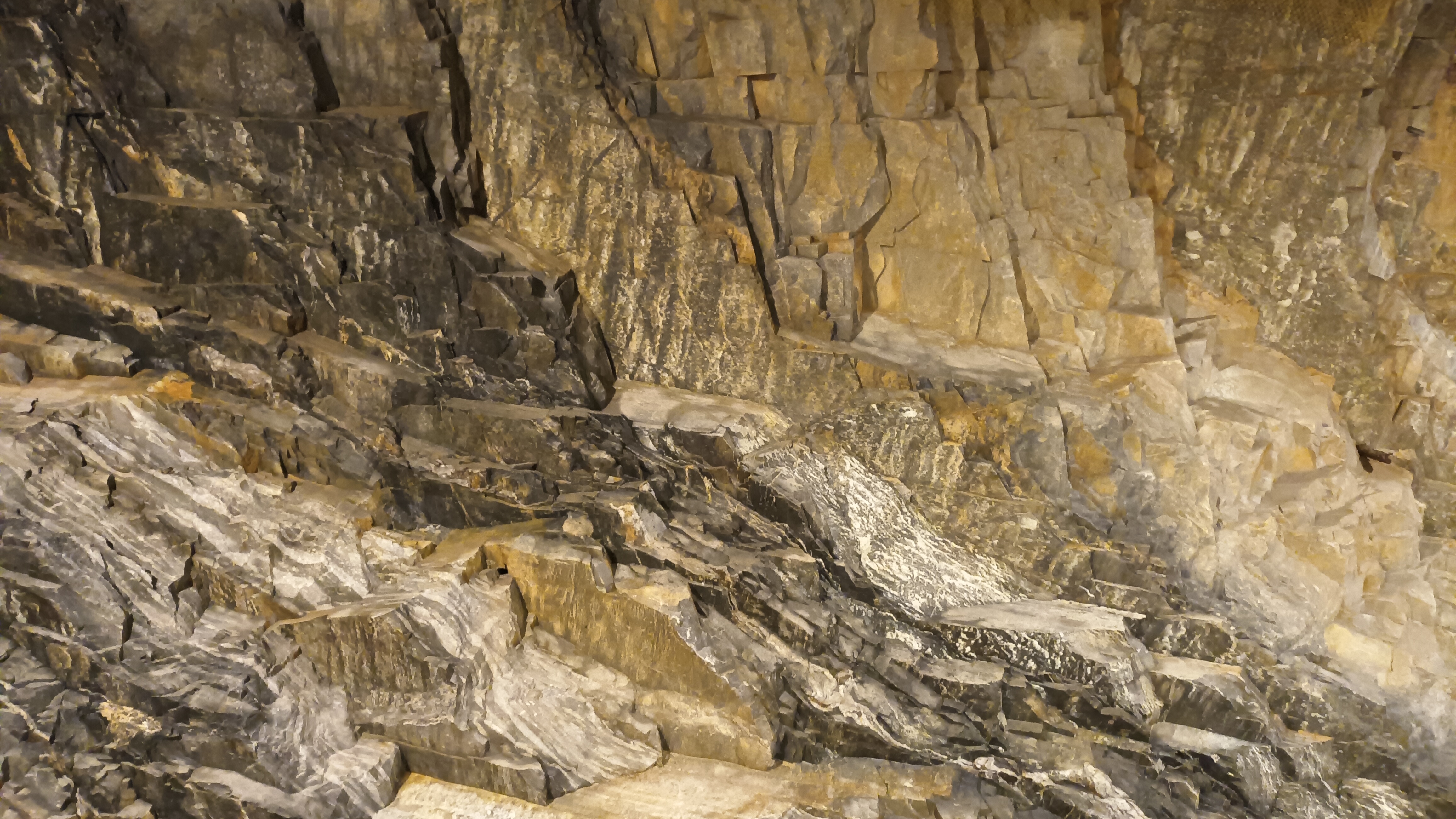 불규칙한 습곡은 지하 깊은 곳에서 생성되며, 암석의 유동이 고려된다. 이는 물엿 표면에 잉크로 그린 주름과 유사하다.[27]
