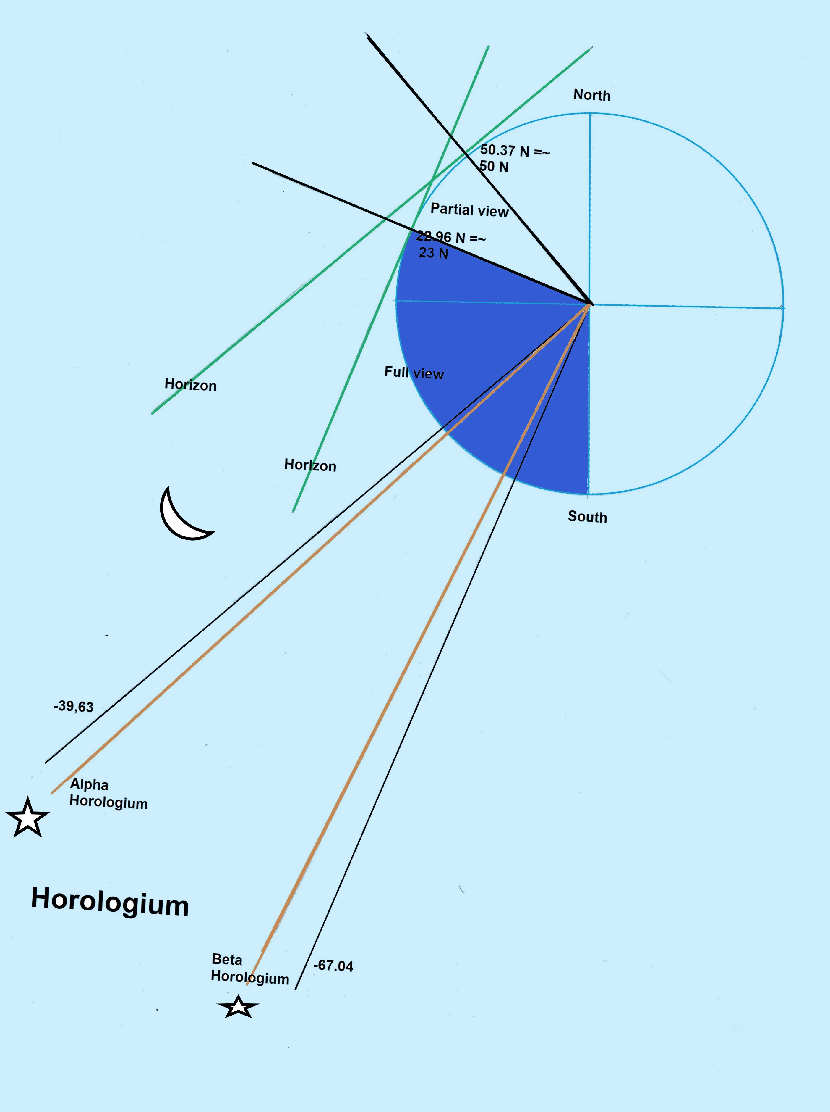 시계자리는 17세기에 만들어진 별자리로 지중해에서는 관측되지 않아 관련된 신화는 없다.