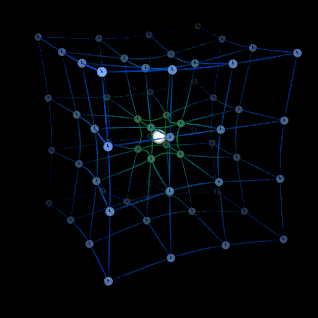 일반 상대성 시공간 | 일반 상대성 이론에서 시공간은 중력에 의해 휘어지며, 이는 질량과 에너지의 분포에 따라 달라진다. |