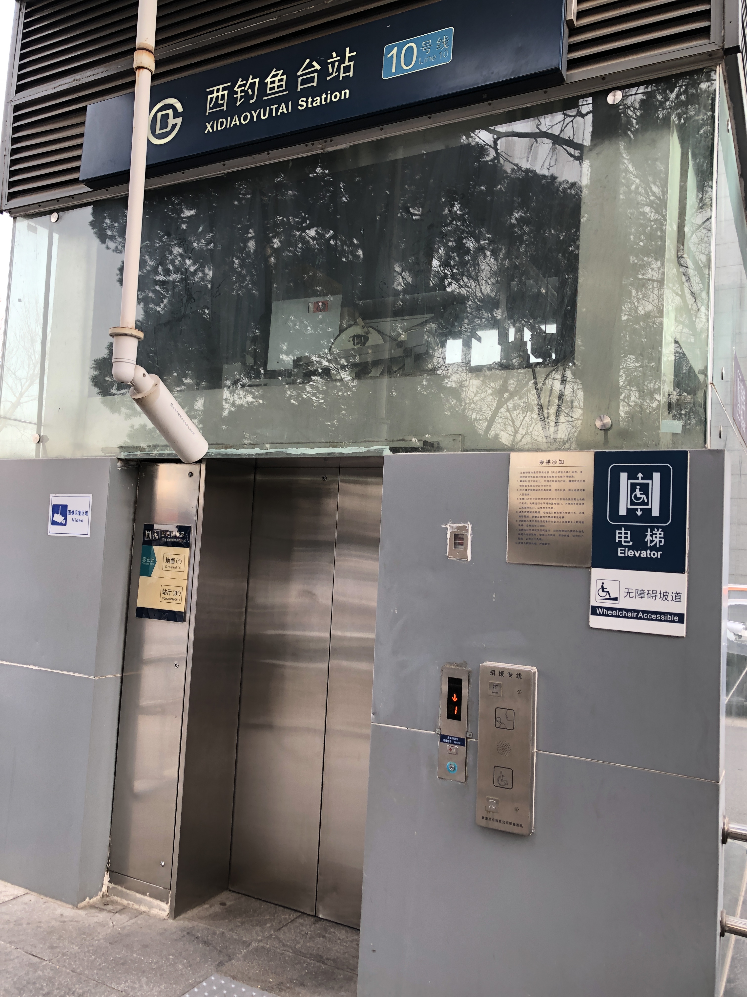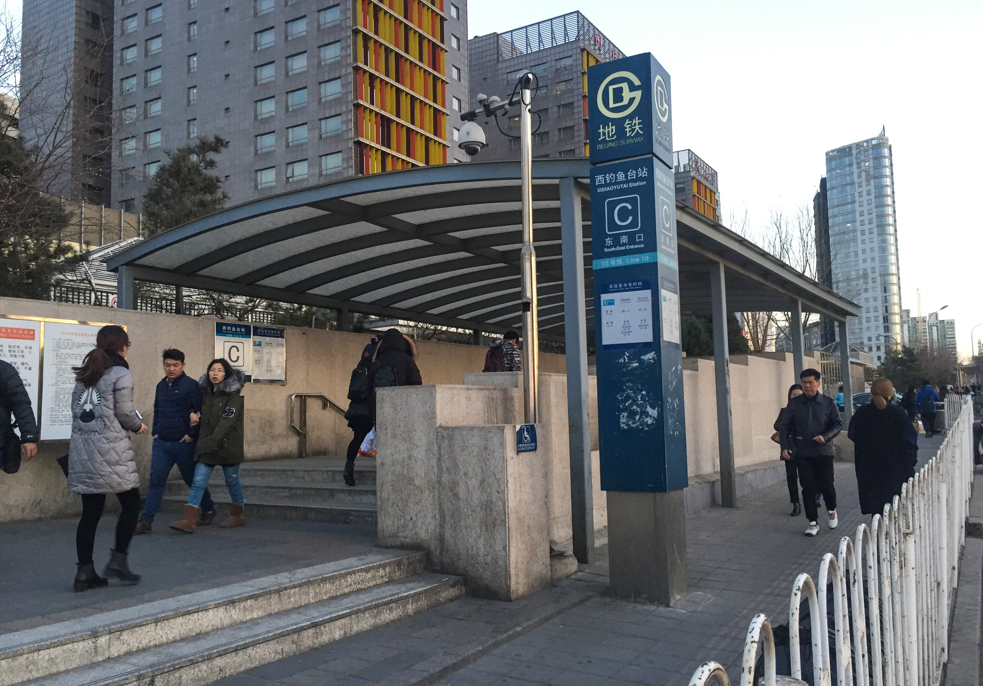 시댜오위타이역은 현재 A(북서쪽)와 C(남동쪽)의 2개 출구가 개방되어 있다.