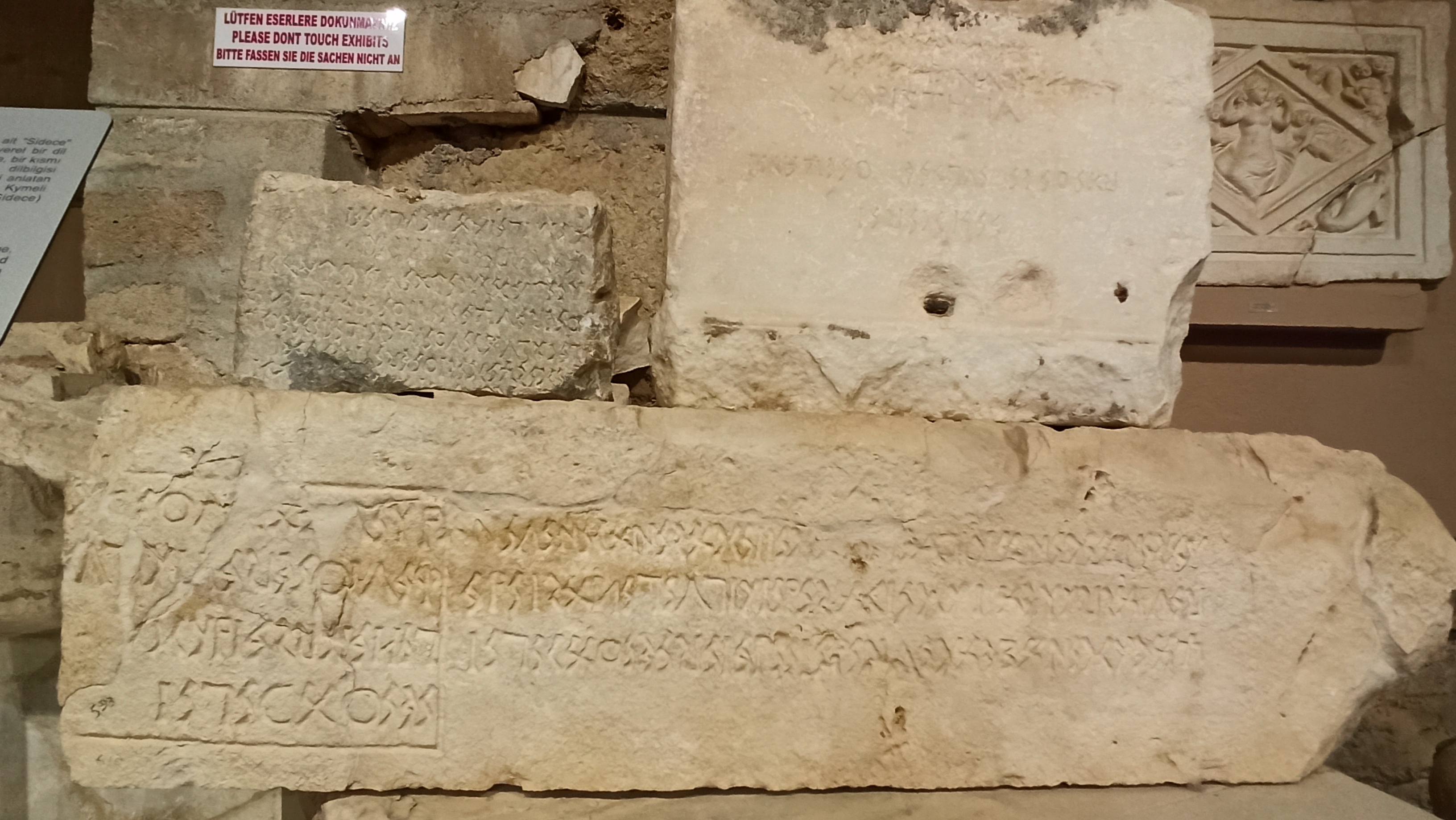 시데어 비문, 터키 시데 박물관 전시품. 왼쪽 상단부터 시계 방향으로 S9, S1, S3, S4