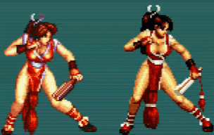 캐치프레이즈 | 매혹의 여자 닌자 (아랑전설 2, 아랑전설 스페셜) 사랑과 수행에 불타는 여자 닌자 (아랑전설 3) 원조 섹시 히로인 (아랑전설 와일드 앰비션) 화려한 여자 닌자 (더 킹 오브 파이터즈 '96) 매혹적인 쿠노이치 인법첩 (더 킹 오브 파이터즈 '98) 요염한 무도 (CAPCOM VS. SNK) |