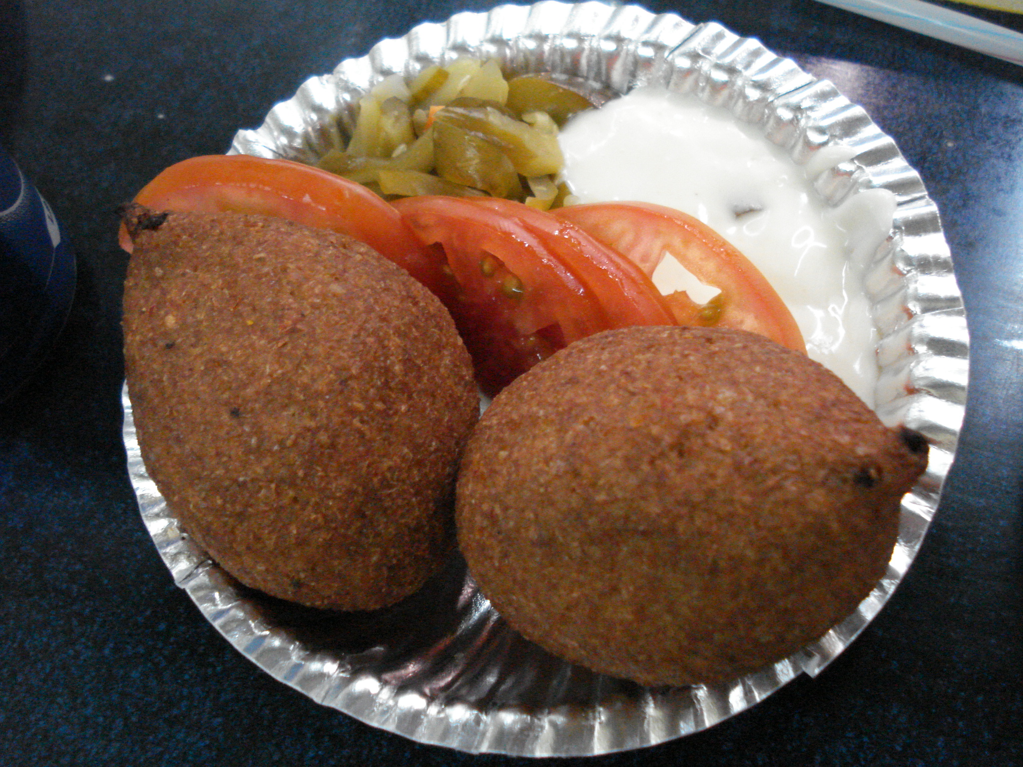 키베 비세니예(كبّة بالصينيّة|키베 비세니예ar)구운 키베 한 접시 ("접시 키베"를 의미)