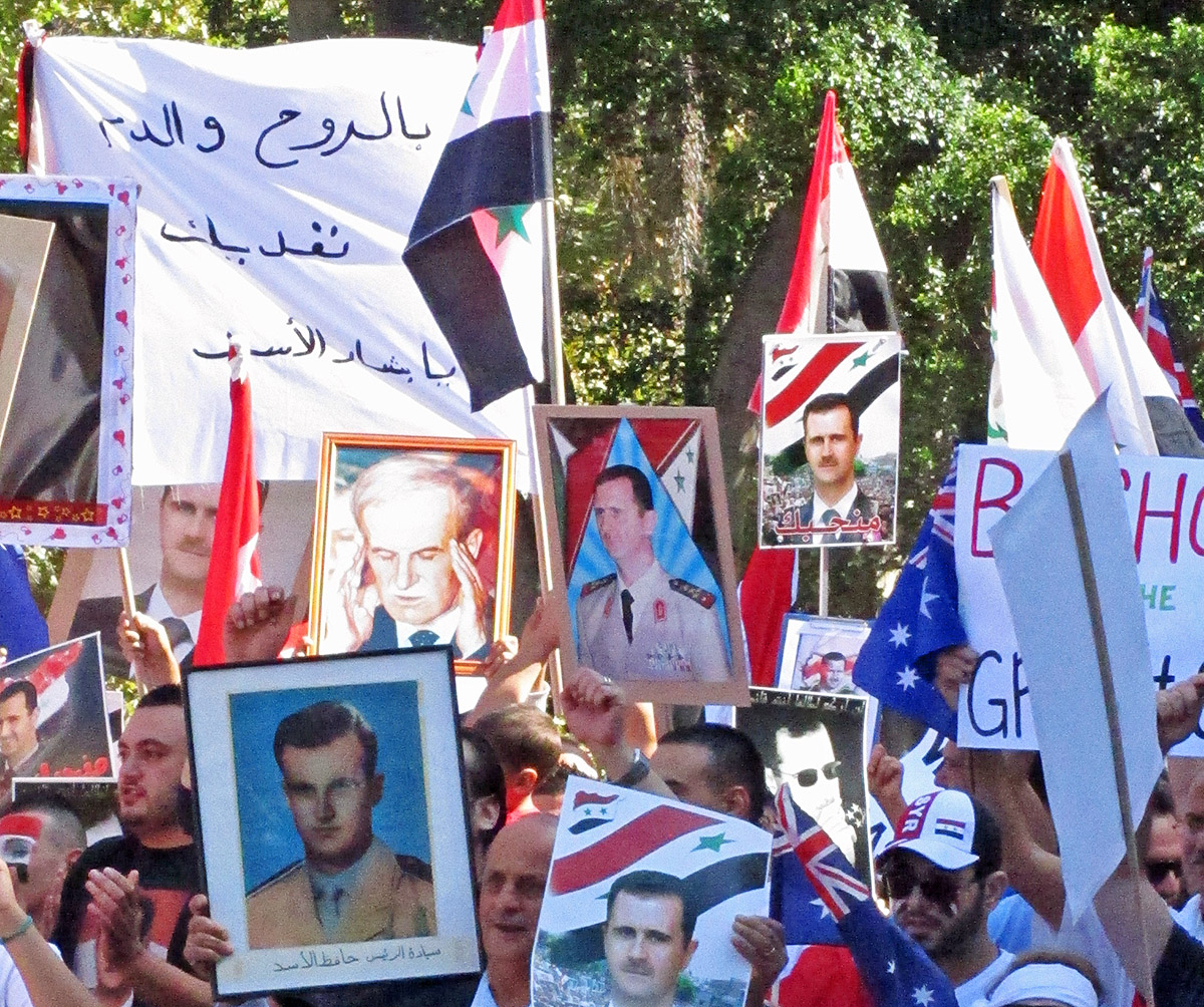 3월 29일, 다마스쿠스, 알레포, 하사카, 홈스, 타르투스, 하마에서는 바샤르 알아사드를 지지하는 수십만 규모의 시위가 열렸다.[1117][1118][1119] 3월 30일, 바샤르 알아사드는 폭동 선동 외국인을 비난하며, 비상사태법 철폐를 선포하지 않고 장래 검토 과제로 둔다는 연설을 했다.[1120] 유튜브에 올려진 CNN 보고에서는, 수요일에 연설을 끝낸 알아사드의 차를 한 여성이 공격했다는 시리아 국영 TV 영상이 나타났다.[1121] 라타키아에서는 바샤르의 연설에 실망한 사람들이 거리로 나왔고, 경관들이 발포했다.[1122][1123] 다음날 시리아 국영 시리아 아랍 통신 (SANA)은 알아사드가 4월 1일부터 공무원 급여를 인상한다는 명령을 내렸다고 보도했다.[1124]