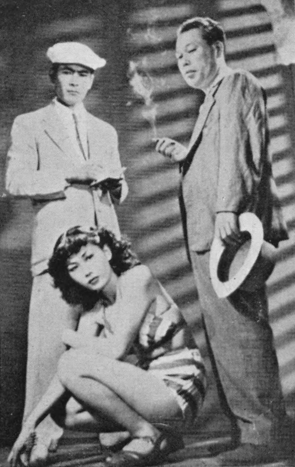 왼쪽부터 미후네 도시로, 시무라, 우에하라 미사 (1957년)