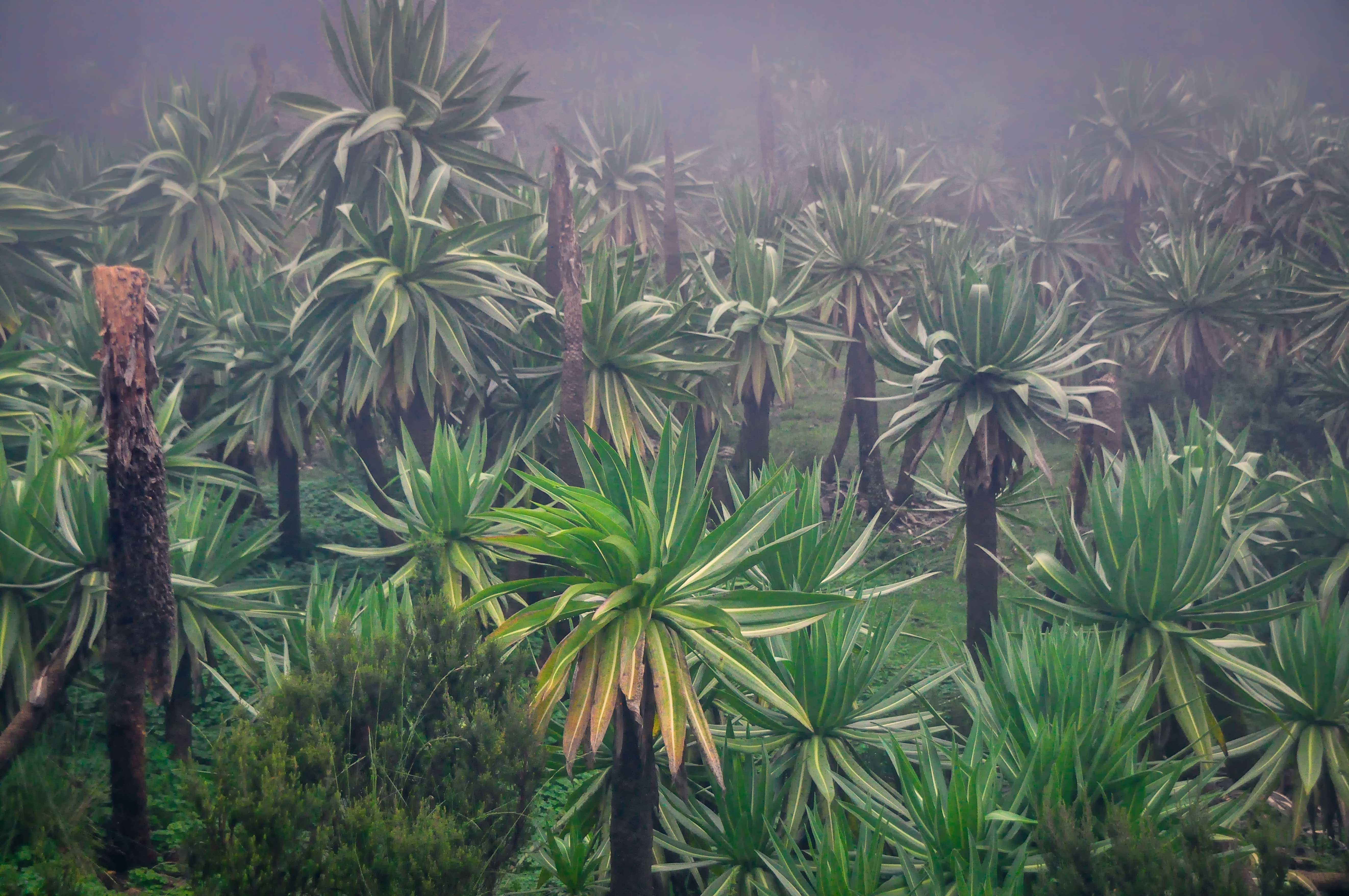 식생은 아프리카 고산림, 황무지 숲, 고산 식생이 혼합되어 있다. 고지대에는 산지 사바나와 나무 헤스(에리카 아르보레아), 거대 로벨리아(로벨리아 린코페탈룸), 노란 앵초(프리물라 베르티실라타), 헬리크리섬속, 숙녀의 망토(alchemilla), 그리고 이끼(이끼, 그림미아과)가 있다. 이끼는 고산 지역의 나무를 덮고 있다. 공원 전체의 식생은 산지 숲(1900-3000m), 에리카 벨트 또는 아프리카 고산대(2700-3700m), 아프로알파인(3700-5433m)의 3개 구역으로 나뉜다. 산지 숲에는 노간주나무(주니페루스 프로세라), 아프리카 적목(하게니아 아비시니카), 아프리카 올리브(올레아 아프리카나), 무화과(''피쿠스'' spp), 워터베리(시지기움 기니엔세)가 있다. 코코나(솔라눔 세실리스텔라툼), 아비시니아 로즈(로사 아비시니카), 카우슬립(프리물라 베르티실라타), 쐐기풀(우르티카)를 포함한 다양한 종류의 관목도 있다.[7] 능선과 협곡에는 흩어진 초원, 숲, 덤불이 있다. 한때 세인트 존스 워트(히페리쿰'' spp.) 숲은 해발 3,000m에서 3,800m까지 자랐지만, 지금은 거의 사라졌다. 정확한 수는 알려져 있지 않다.
