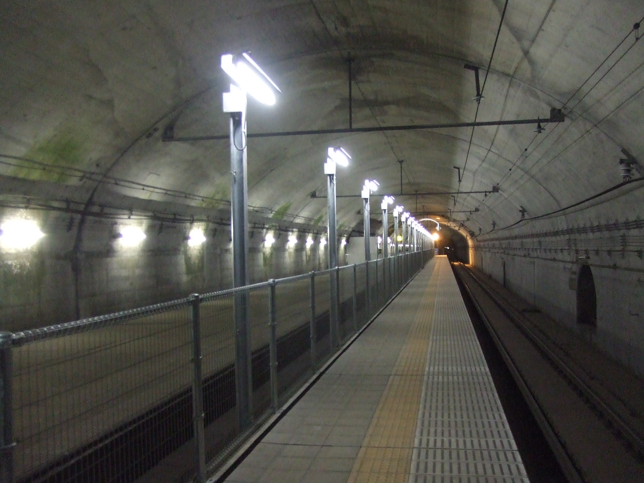 - 유비소역의 하행 승강장은 신시미즈 터널로 진입한 직후에 위치한다.