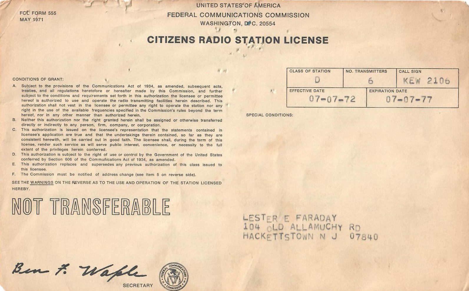 1970년대 중반 미국에서 일반 대중에게 더 널리 사용되었다. 원래 CB 라디오는 구매한 면허(1970년대 초 20달러, 1975년 3월 1일 4달러로 인하) 외에 호출 부호를 사용해야 했다. 그러나 CB 열풍이 절정에 달했을 때 많은 사람들이 이 요구 사항을 무시하고 "별명"이라고 알려진 자체 닉네임을 발명했다. CB 라디오의 승인된 사용에 대한 규칙을 느슨하게 시행하면서 안테나 높이, 원거리 통신, 면허, 호출 부호 및 송신기 전력과 같은 규정을 광범위하게 무시하게 되었다. 개인 면허는 1983년 4월 28일에 종료되었다.[8]