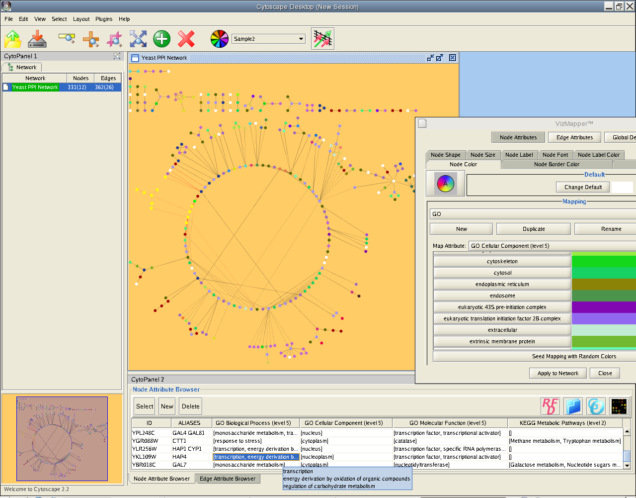 분자생물학에서 시스템은 좁은 의미로 세포 내 구성 요소의 네트워크(유전 정보, 신호 전달, 대사 등으로 구성)를 의미한다. 이 복잡한 네트워크를 밝히는 것은 시스템 생물학의 목표 중 하나이다. 단백질 간 상호작용(Protein-Protein Interaction)으로 형성된 네트워크도 그 예시인데, 효모(Saccharomyces cerevisiae)와 같은 비교적 단순한 모델 생물에서도 매우 많은 단백질이 복잡하게 상호작용한다는 것이 알려져 있다. 이러한 연구에는 시각화와 데이터 마이닝이 중요한 역할을 한다.[19]