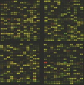 마이크로어레이는 전사체학의 대표적인 기술로, 유전자 발현 정도를 대량으로 측정할 수 있다.[40] 반도체 칩 제조 공정과 유사한 방식으로 작은 판 위에 수백만 개의 유전자 발현 정도를 확인할 수 있다. 비교군과 대조군의 샘플에서 mRNA를 추출하여 상보적인 cDNA를 만들고 형광 물질로 표지하여 탐침자가 붙어 있는 마이크로 칩에 뿌려주면 형광 물질의 색으로 발현 정도를 확인할 수 있다.