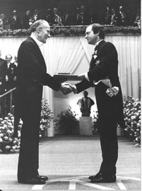 1979년 스웨덴 국왕 칼 16세 구스타프로부터 노벨상을 받는 슐츠