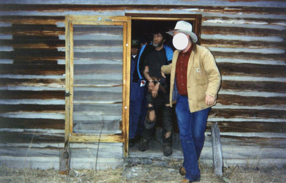 1996년 4월, FBI는 데이비드 카진스키의 제보를 바탕으로 몬태나주 링컨의 오두막에서 시어도어 카진스키를 체포했다.[290] 데이비드는 자신의 형인 시어도어 카진스키가 쓴 글의 요지와 문체가 유나바머의 선언문과 유사하다는 것을 알아차리고 FBI에 제보했다. 체포 당시 카진스키는 헝클어진 머리 상태였으며, 오두막 수색 결과 폭탄 제조 부품, 폭탄 제조 실험, 유나바머 범죄에 대한 설명, 수제 개조 총기 및 폭탄 1개를 포함한 4만 장의 손으로 쓴 일기장 페이지가 발견되었다.[113] 또한 ''산업 사회와 그 미래''의 원본 타이핑 원고로 보이는 것도 발견되었다.[114][115]