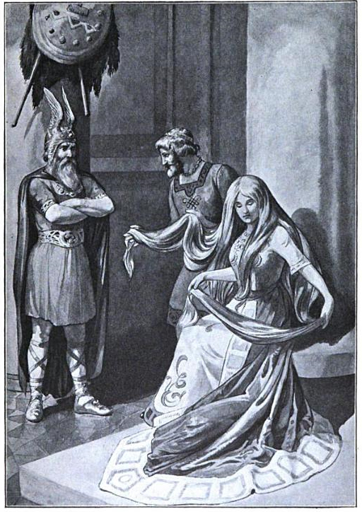 오딘은 거인 흐룽그니르를 요툰헤임으로 찾아갔고, 둘은 슬레이프니르와 굴팍시(황금 갈기)를 타고 경주를 한다. 오딘이 이겼고, 흐룽그니르는 그를 아스가르드 문까지 따라왔는데, 어리석게도 안으로 초대받는다. 그는 끔찍한 손님이었고 극도로 취하며, 아름다운 프레야와 시프를 제외한 모든 에시르를 죽이겠다고 호언장담했는데, 그들은 그가 함께 요툰헤임으로 데려갈 의향이 있다고 말했다. 토르는 트롤 사냥 원정에서 아스가르드로 돌아와 흐룽그니르의 무례함에 대해 듣고 그에게 결투를 신청한다. 흐룽그니르는 오딘 자신이 초대한 것이고, 지금은 무기를 가지고 있지 않으며, 무방비 상태에서 그를 죽여 토르가 명성을 얻을 수 없을 것이라고 지적했다. 그는 아스가르드와 요툰헤임의 경계에서 결투를 제안했고, 토르는 그전에 그에게 단독 전투를 제안한 사람이 없었기에 기꺼이 받아들였다.[2]