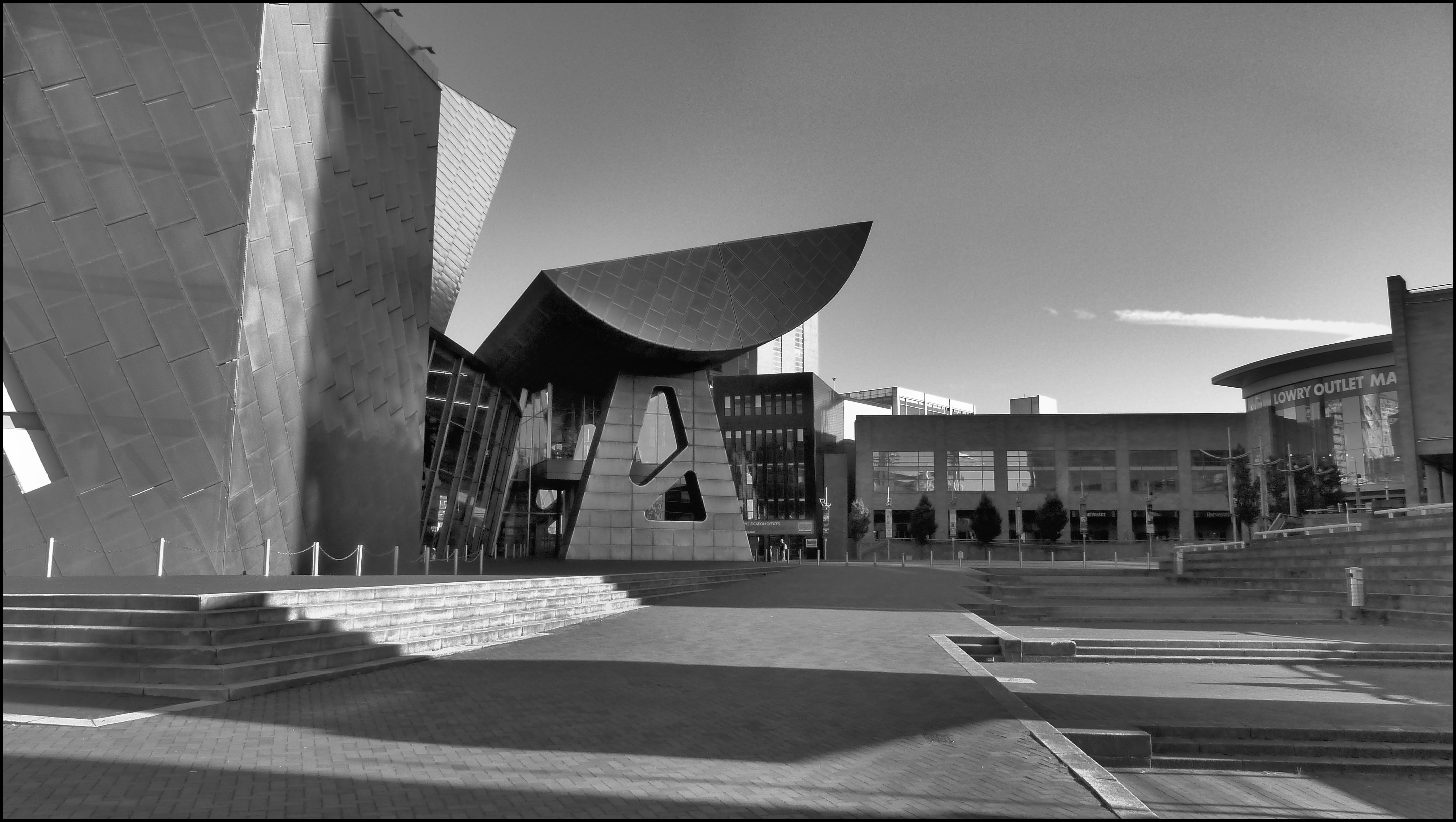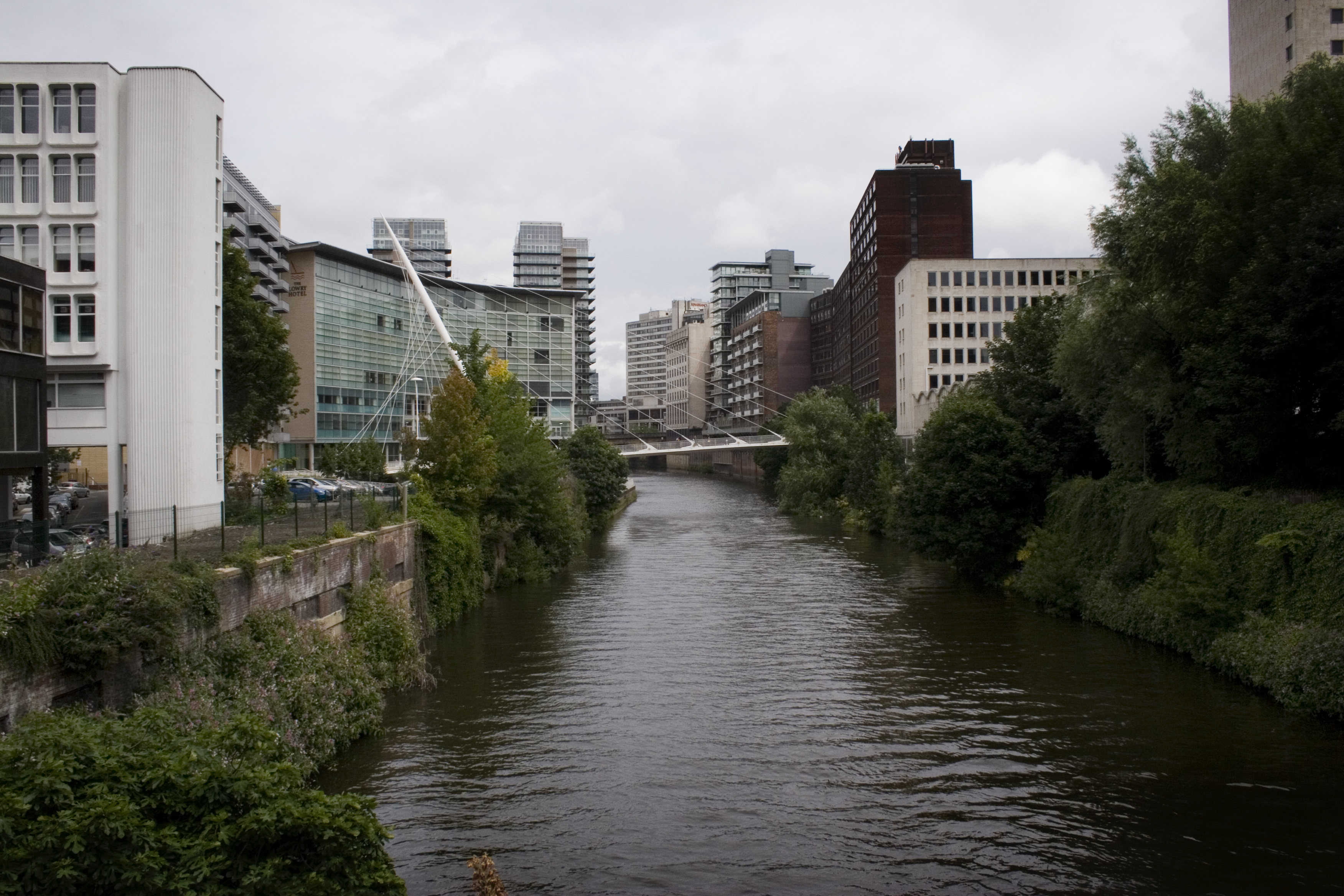 산업 혁명 동안 솔퍼드는 섬유 산업의 결과로 성장했다.[16] 솔퍼드는 인구 증가를 경험했지만, 맨체스터의 지배력에 가려져 상업 중심지로 발전하지 못했다.[17] 1894년에 맨체스터 선박 운하가 개통되어 머지강에서 솔퍼드 키스까지 이어졌다. 완공되었을 때 세계에서 가장 큰 항해 운하였다.[21] 운하 경로를 따라, 브리지워터 운하를 선박 운하 위로 운반하는 바턴 스윙 수로교가 건설되었다. 에드워드 리더 윌리엄스 경이 설계한 이 수로교는 100m 길이이며 1450MT의 무게가 나간다.[22][23][24]2. 3. 20세기 이후