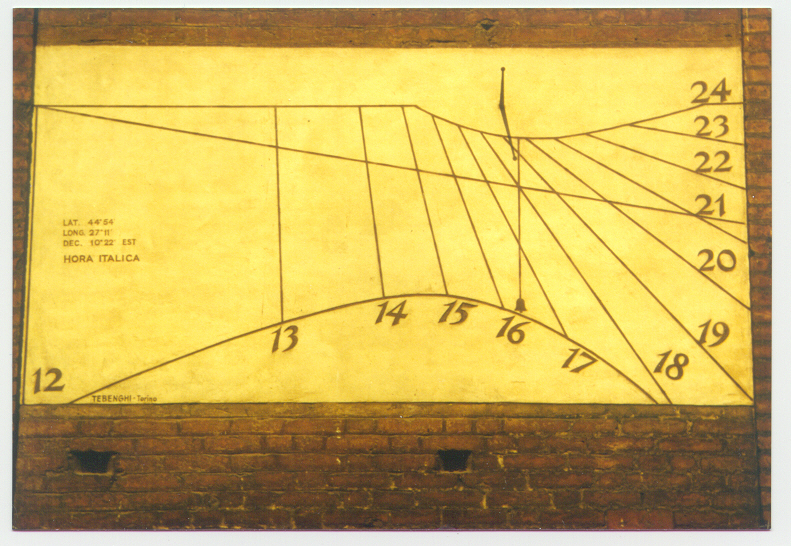 "이탈리아 시간" 또는 "구 체코 시간"에서 첫 번째 시는 일몰 삼종기도 종소리(또는 황혼이 끝나는 시점, 즉 일몰 후 30분)에 시작되었다. 시는 1부터 24까지 번호가 매겨졌다. 예를 들어, 루가노에서는 12월에 해가 14시에 뜨고 정오가 19시였으며, 6월에는 해가 7시에 뜨고 정오가 15시였다. 일몰은 항상 24시의 끝이었다. 교회 탑의 시계는 1부터 12까지만 쳐서 밤이나 이른 아침 시간에만 울렸다.