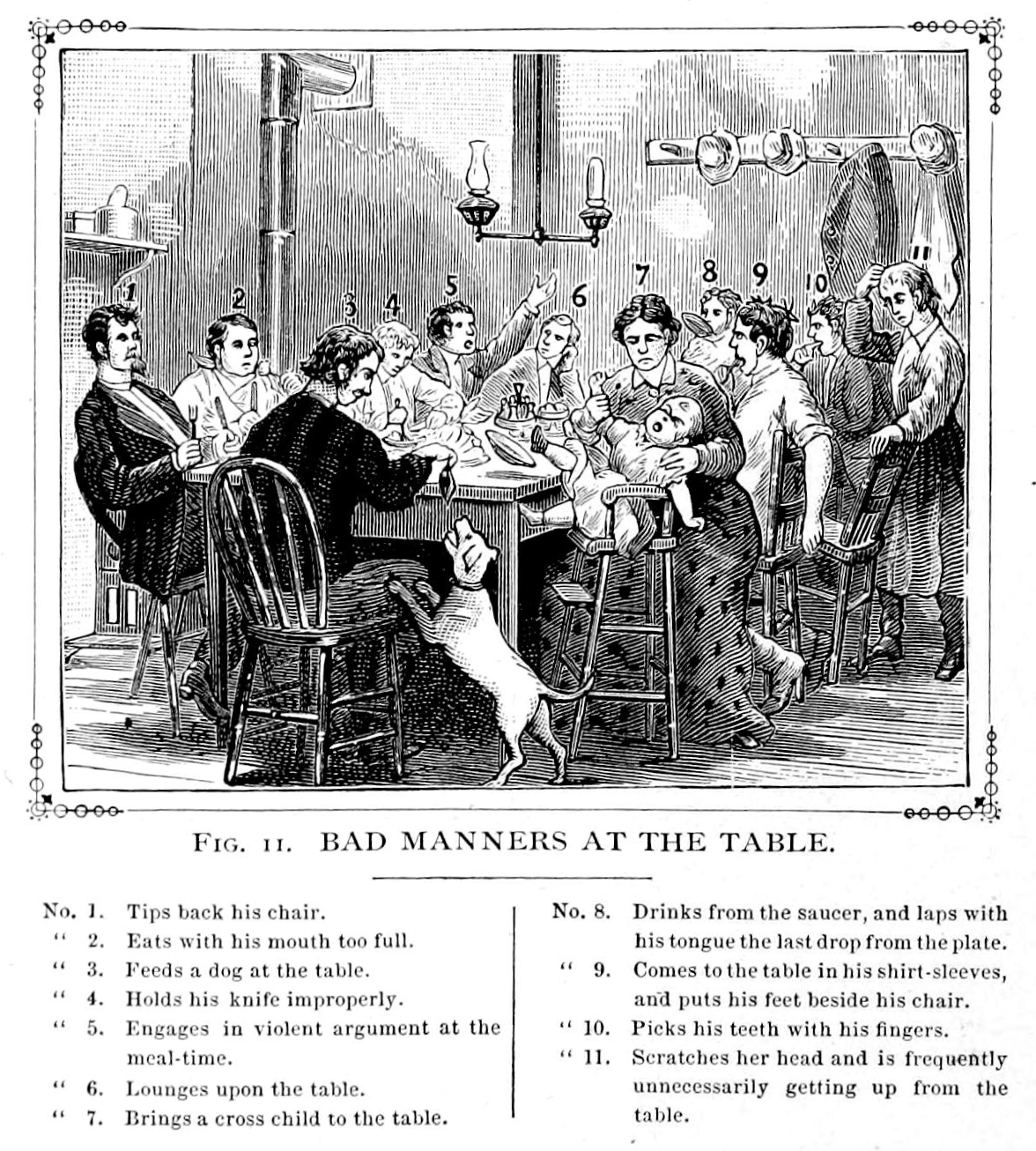 ''Hill's Manual of Social Business Forms''(1879)에 실린 나쁜 식사 예절 삽화