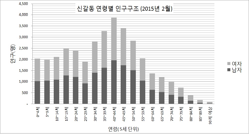 2017년 3월 31일 기준(내국인)으로 신갈동의 인구는 37,489명이며, 용인시 전체 인구의 3.7%를 차지한다.[1]