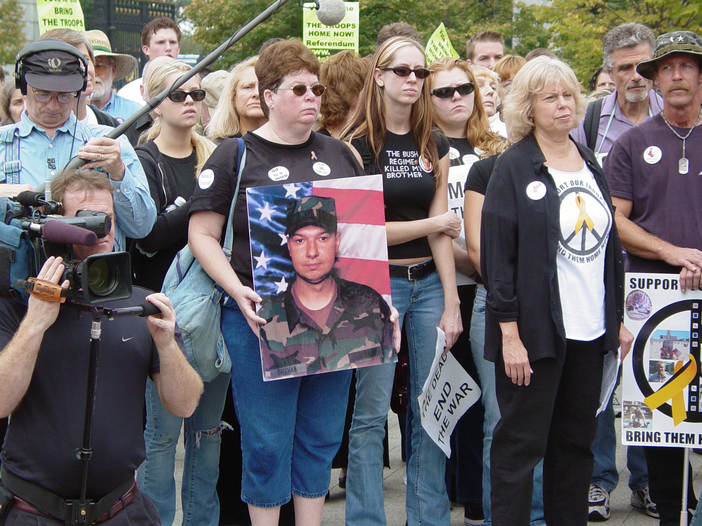 신디 시핸은 아들 케이시 시핸의 사망 이후 반전 운동에 적극 참여했다.[11] 2004년 6월 조지 W. 부시 대통령과 만난 자리에서 전쟁의 명분에 의문을 제기했고,[12] 이후 이라크 침공에 대한 비판적인 입장을 분명히 했다.[11]
