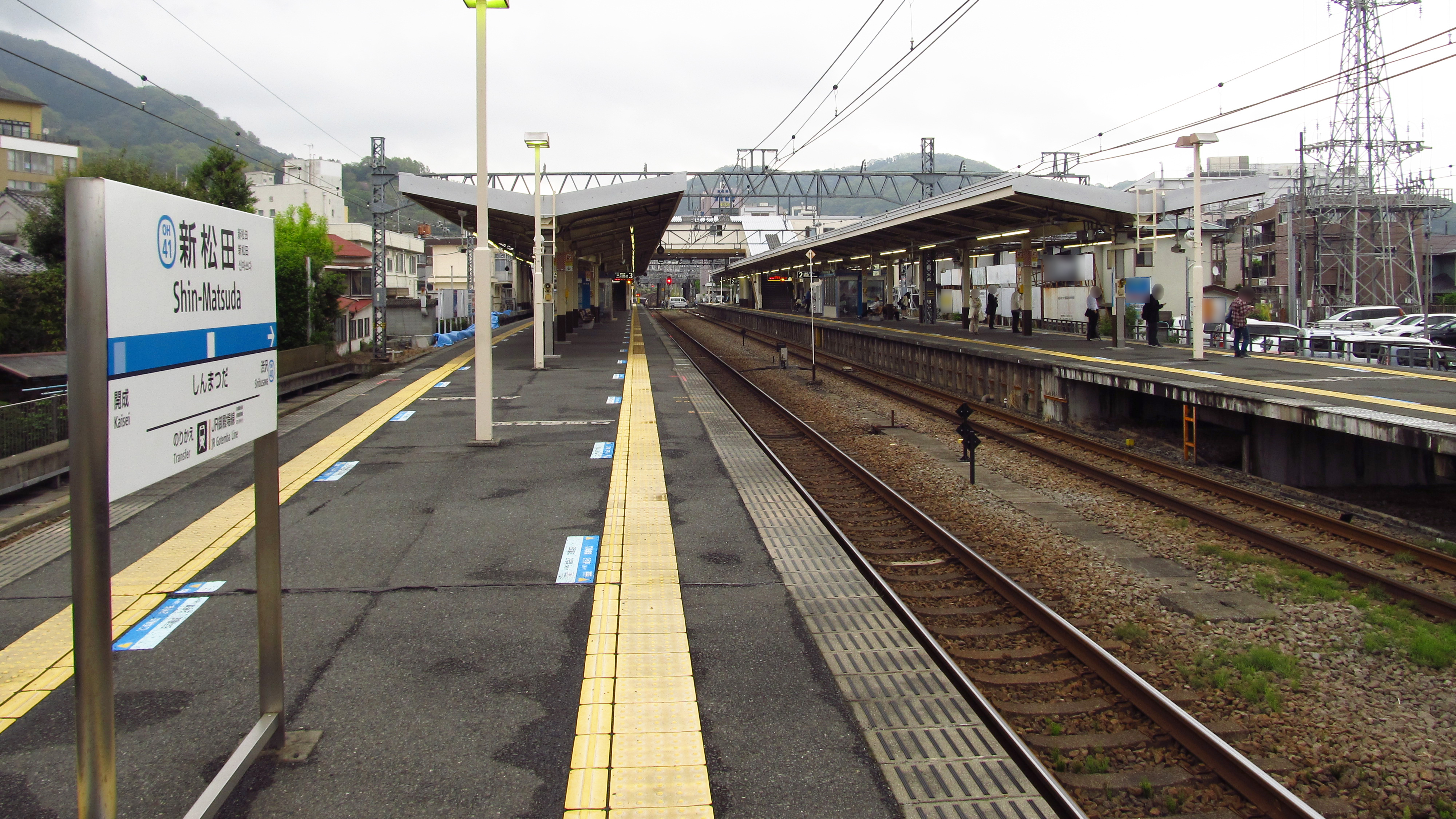 신마쓰다 역은 4개 선로를 갖춘 2개 상대식 승강장이 있다.