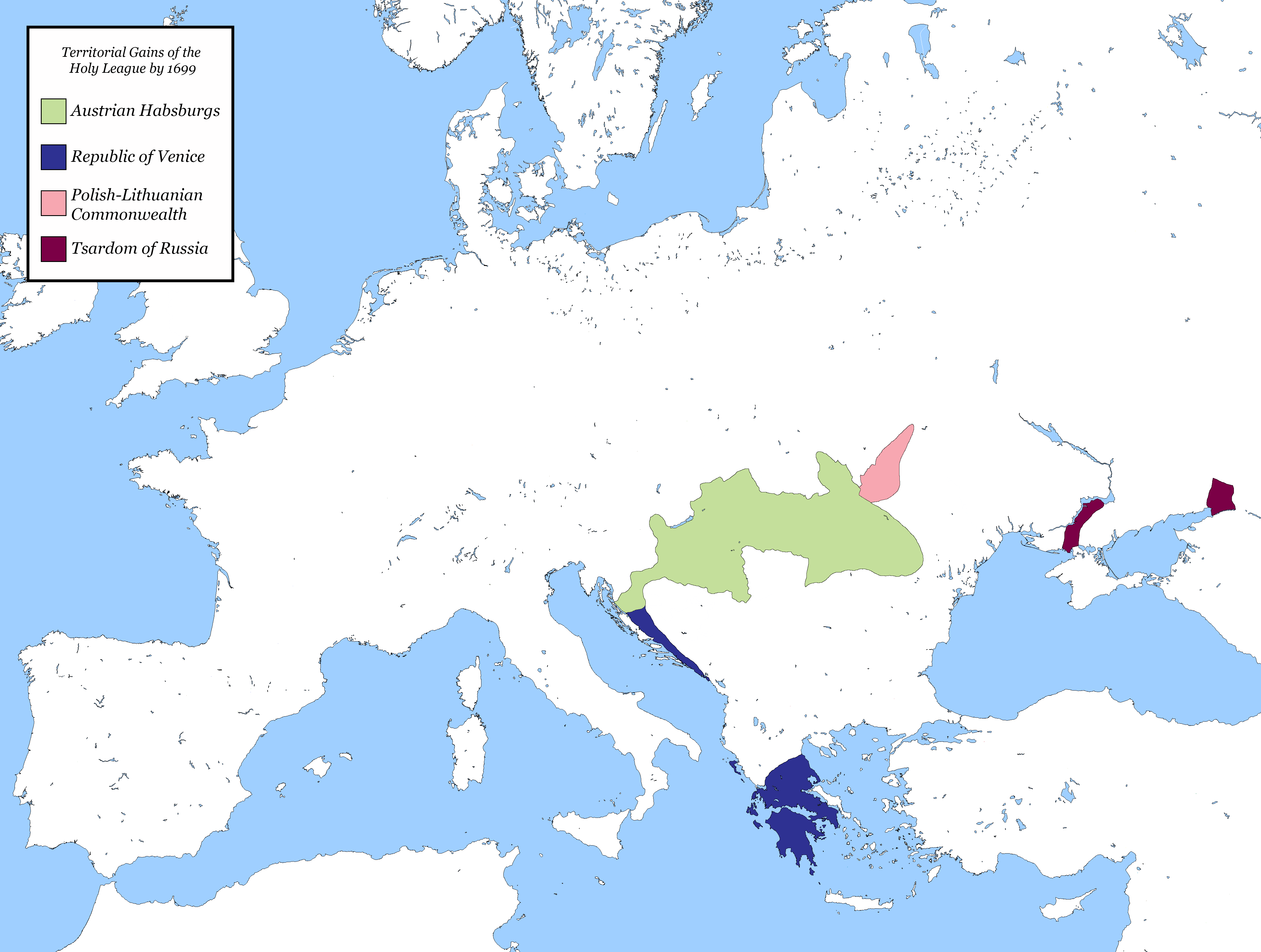 카를로비츠 조약은 현상 유지를 보장했는데, 이는 동맹국들이 정복한 모든 영토를 유지할 수 있다는 것을 의미했다.[37] 합스부르크 제국은 토쾨리의 오스만 제국 통치하에 있던 헝가리를 되찾았고, 베네치아 공화국은 모레아와 달마티아 지역을, 폴란드는 포돌리아를, 러시아 차르국은 노보로시야 일부와 아작을 되찾았다.[46]
