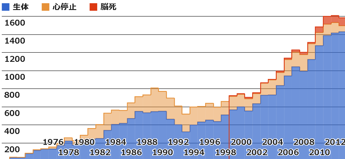 일본에서는 1956년 니가타 대학에서 승홍(염화수은(II)) 중독에 의한 급성 신부전 환자에 대한 생체 신장 이식이 처음이었지만, 환자 자신의 신장 기능 회복을 위한 목적이었고, 4일만에 적출하였다.[115] 생착을 목표로 한 신장 이식은 1964년 도쿄 대학에서 시행된 만성 신부전 환자에 대한 생체 신장 이식이 처음이다.[116]