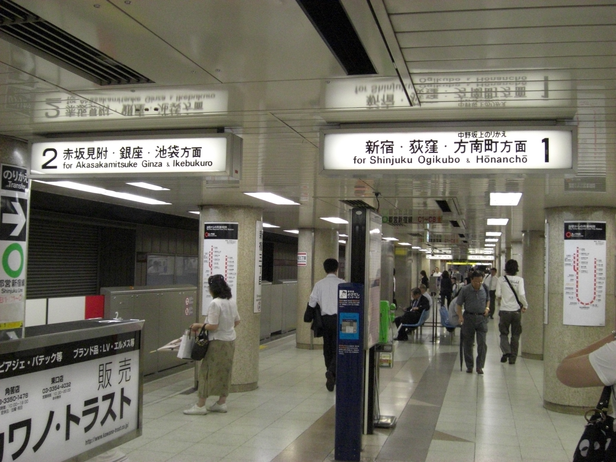1 | 마루노우치 선 | 신주쿠, 나카노사카우에, 오기쿠보, 나카노후지미초 방면 |