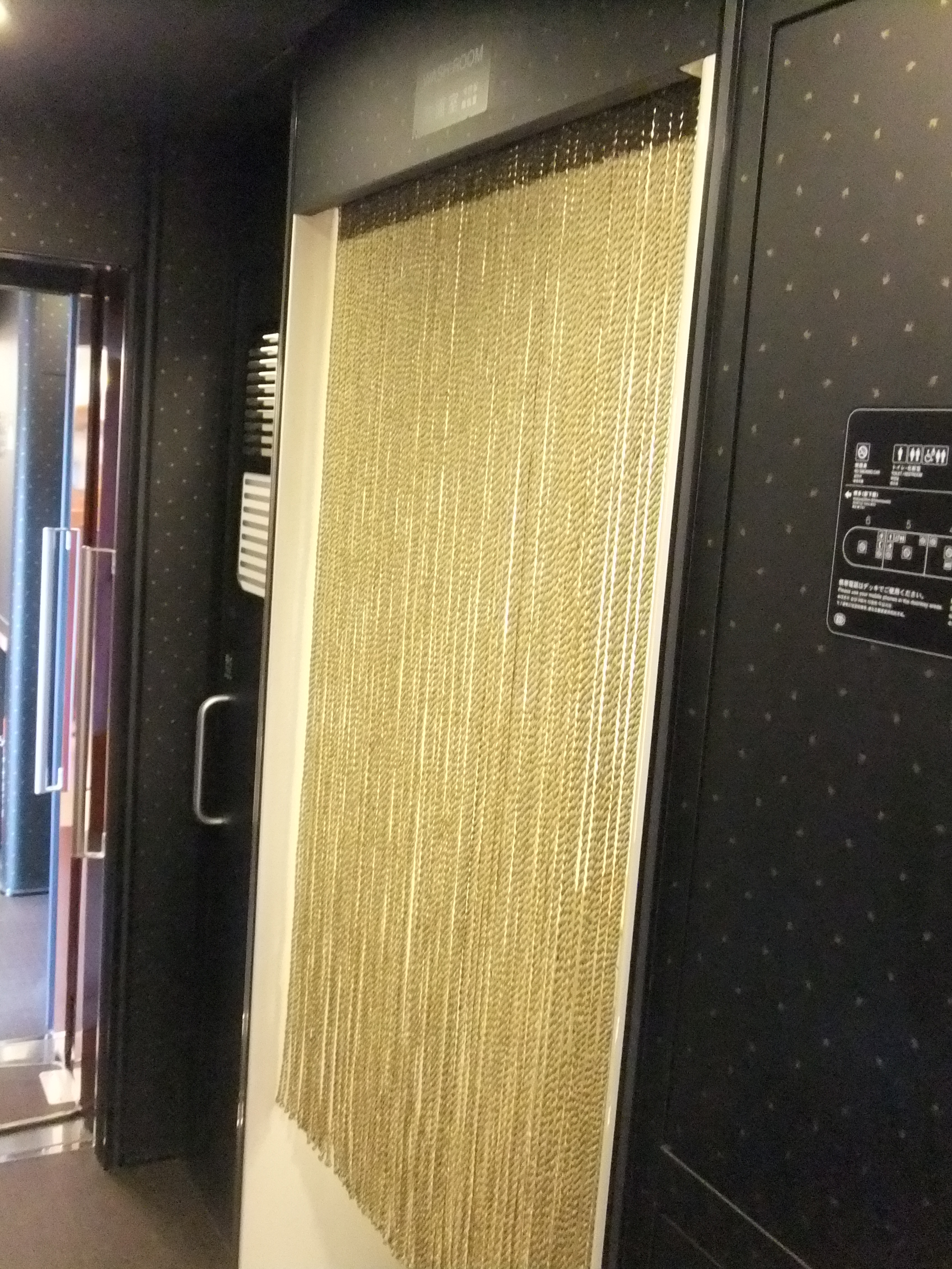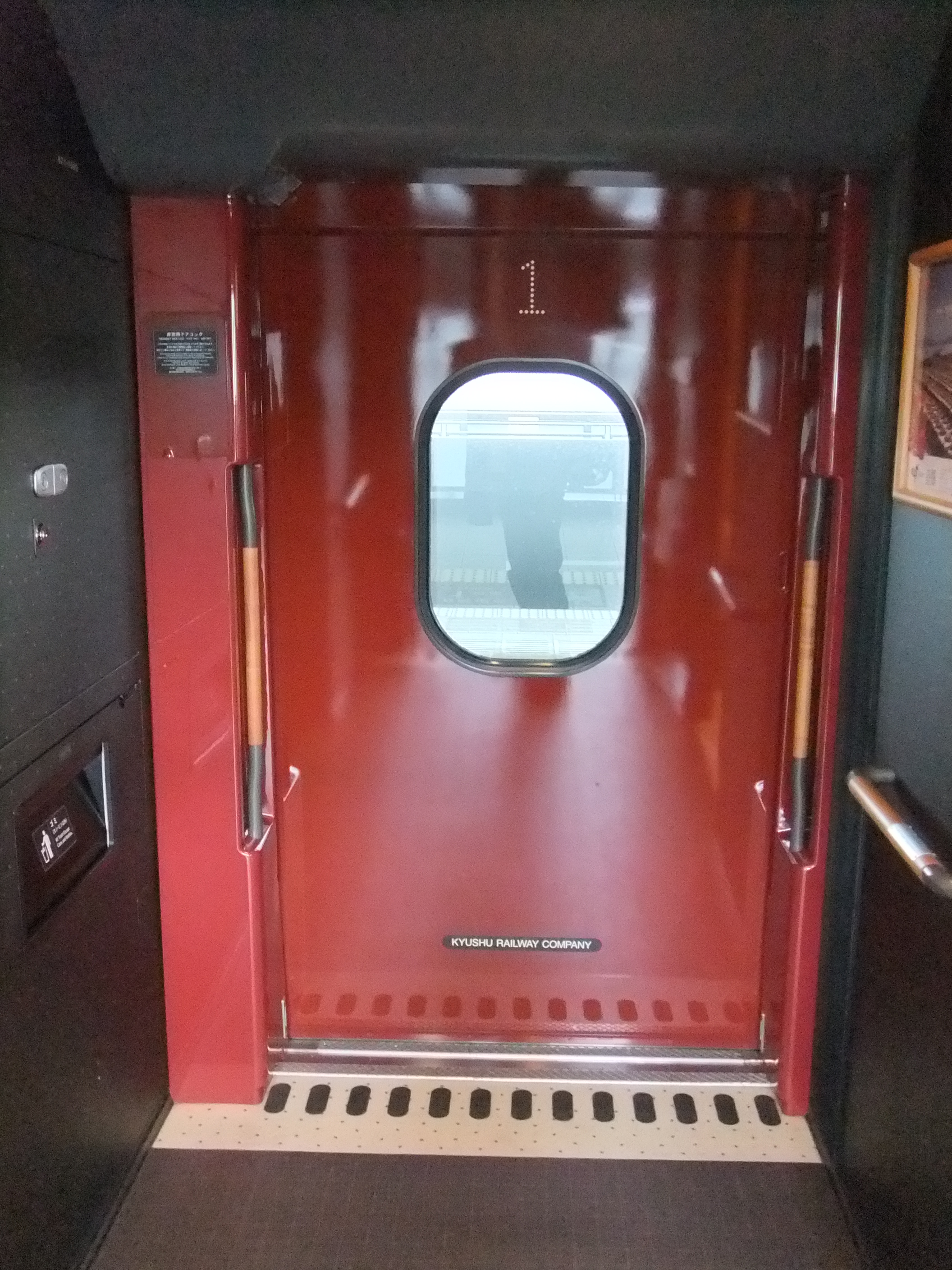 출입구 벽은 감색, 객실용 문은 고대 옻칠색이라는 전통색이며, 손잡이와 잡는 봉에는 구마모토산 벚나무 재가 사용되었다.