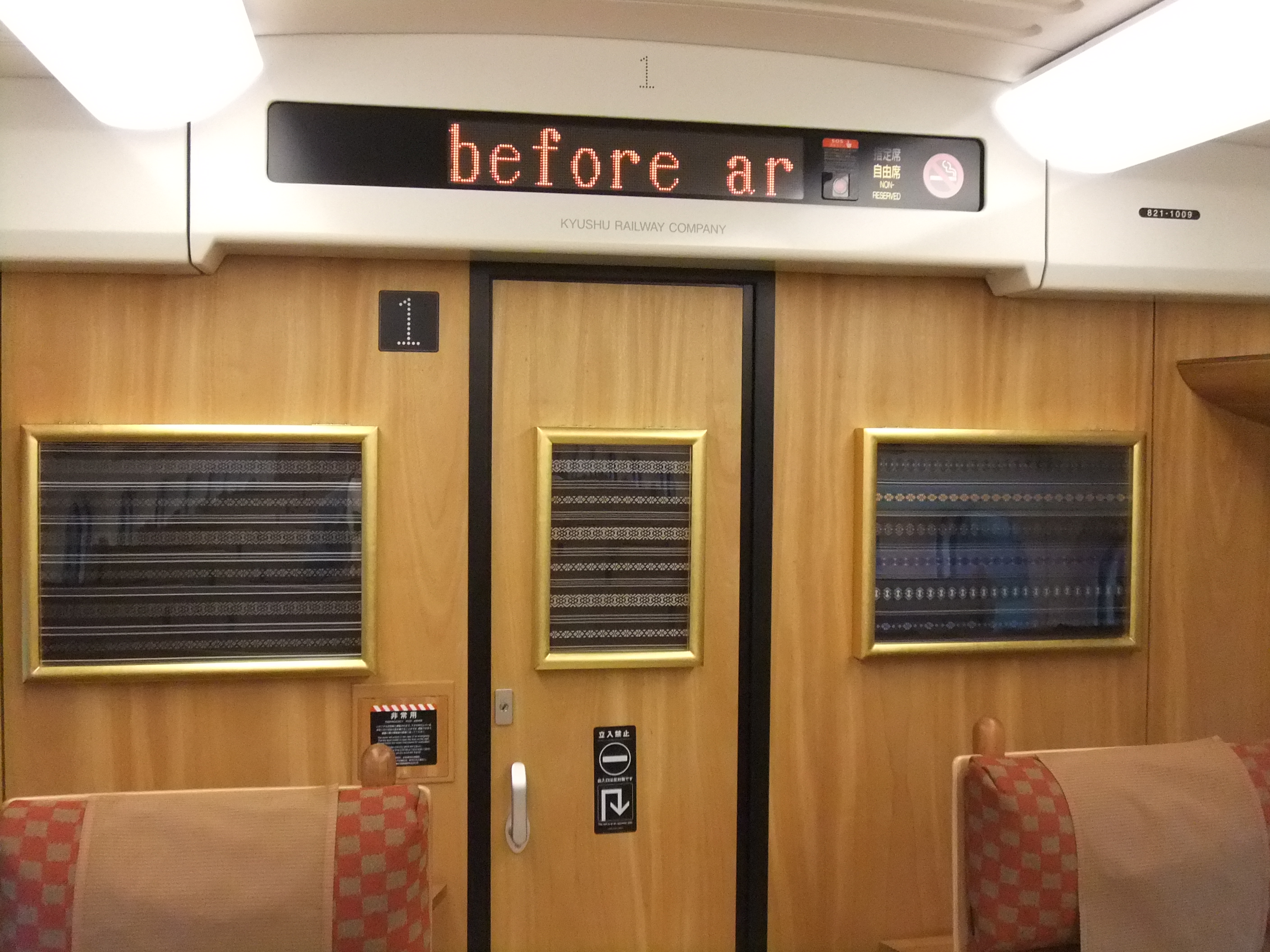 데크와 객실을 구분하는 문 상부에 설치된 차내 안내 표시기에는 차량 안내, 정차역 안내, 니시니혼 신문 뉴스가 표시된다. 이후 차내 후방 좌석에서의 시인성 향상을 목적으로 증비차와 마찬가지로 차내 중앙 천장부에도 차내 안내 표시기가 설치되었다.