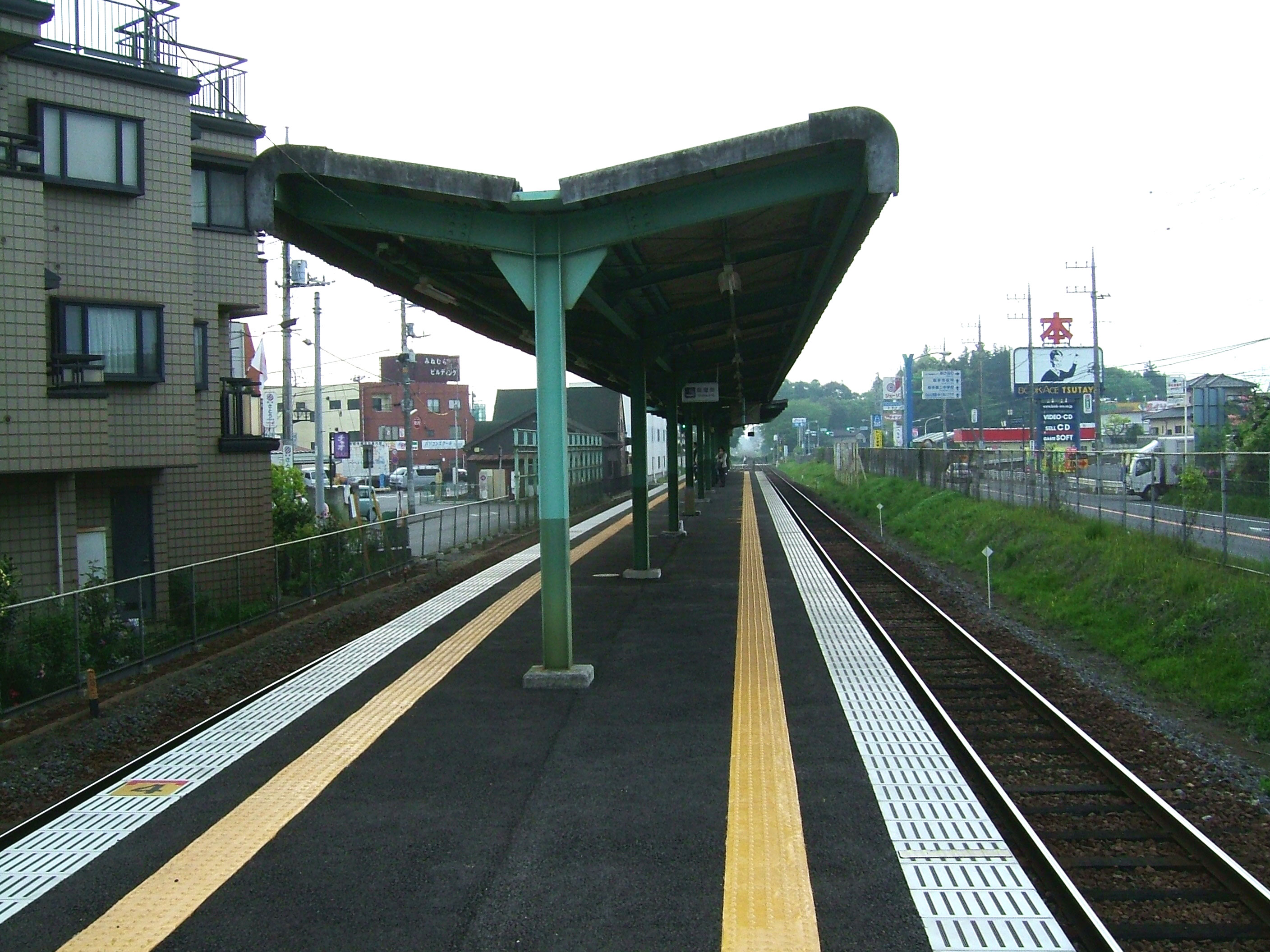 낮 시간대에는 대략 1시간에 3편의 보통 열차(도리데행)가 정차한다.[9]4. 2. 하행 (모리야 · 고키누 · 미쓰카이도 · 시모쓰마 · 시모다테 방면)
