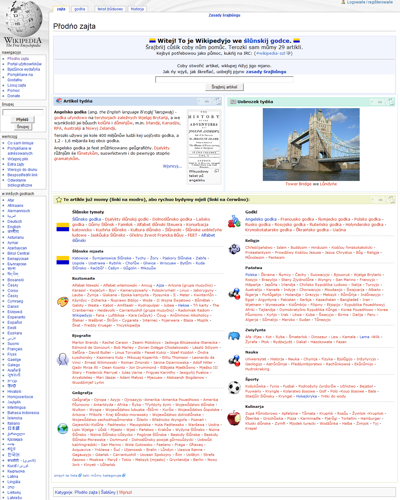 실롱스코 고트카/ślōnskŏ gŏdkaszl 위키백과는 2008년 5월 26일에 시작되었다.[19]