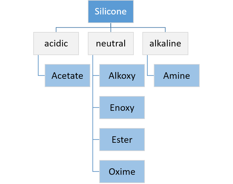 - 축합 경화 시스템: 일액형 (RTV, 상온 가황) 또는 이액형 시스템이 있다.[3]
