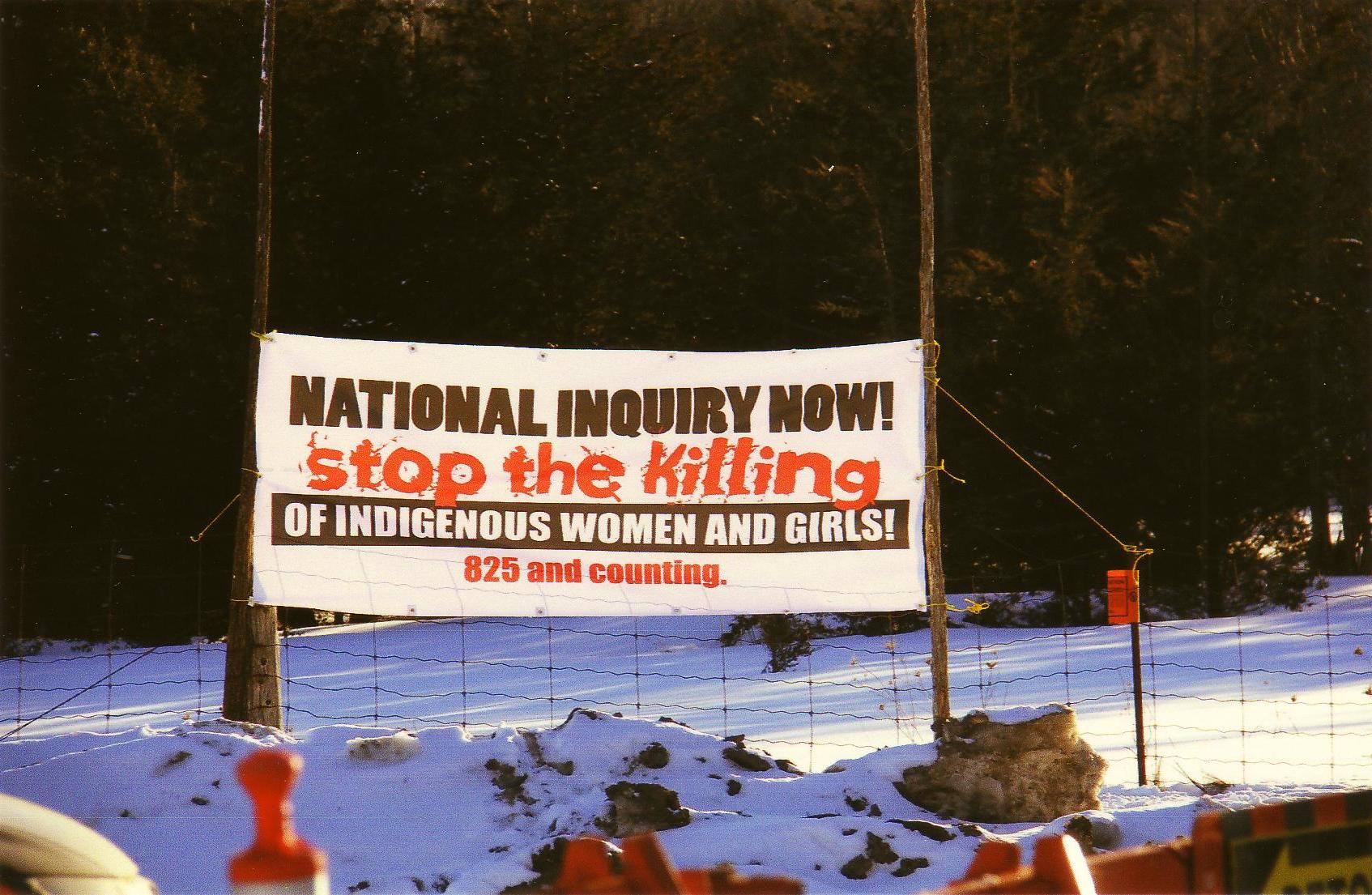 2014년 RCMP의 보고서 "실종 및 살해된 원주민 여성: 전국 작전 개요"에 따르면 30년 동안 1,000명 이상의 원주민 여성이 살해되었다.[72] 활동가들의 요구에 따라, 연방 정부는 2010년에 종료된 실종 및 살해된 여성에 대한 데이터 수집에 자금을 지원했으며, 캐나다 원주민 여성 협회(NWAC)는 1960년대 이후 582건을 기록했으며, 그중 39%가 2000년 이후에 발생했다.[43] 그럼에도 불구하고, 옹호 단체들은 더 많은 여성들이 실종되었으며, 브리티시 컬럼비아에서 가장 많은 사건이 발생했다고 말한다. 주목할 만한 사건으로는 눈물의 고속도로 살인 사건으로 살해된 19명의 여성과 연쇄 살인범 로버트 픽턴에 의해 광역 밴쿠버 지역에서 살해된 49명의 여성 중 일부가 포함된다.[25] 원주민 단체, 활동가 및 비정부 기구의 반복적인 요구에 따라, 저스틴 트뤼도 캐나다 총리 정부는 2016년 9월 실종 및 살해된 원주민 여성에 대한 전국 조사를 설립했다.[23] 2016년 4월 22일 조사 배경에 따르면 1980년에서 2012년 사이에 원주민 여성은 캐나다 전체 여성 살인 사건의 16%를 차지했지만, 캐나다 여성 인구의 4%에 불과했다.[24]