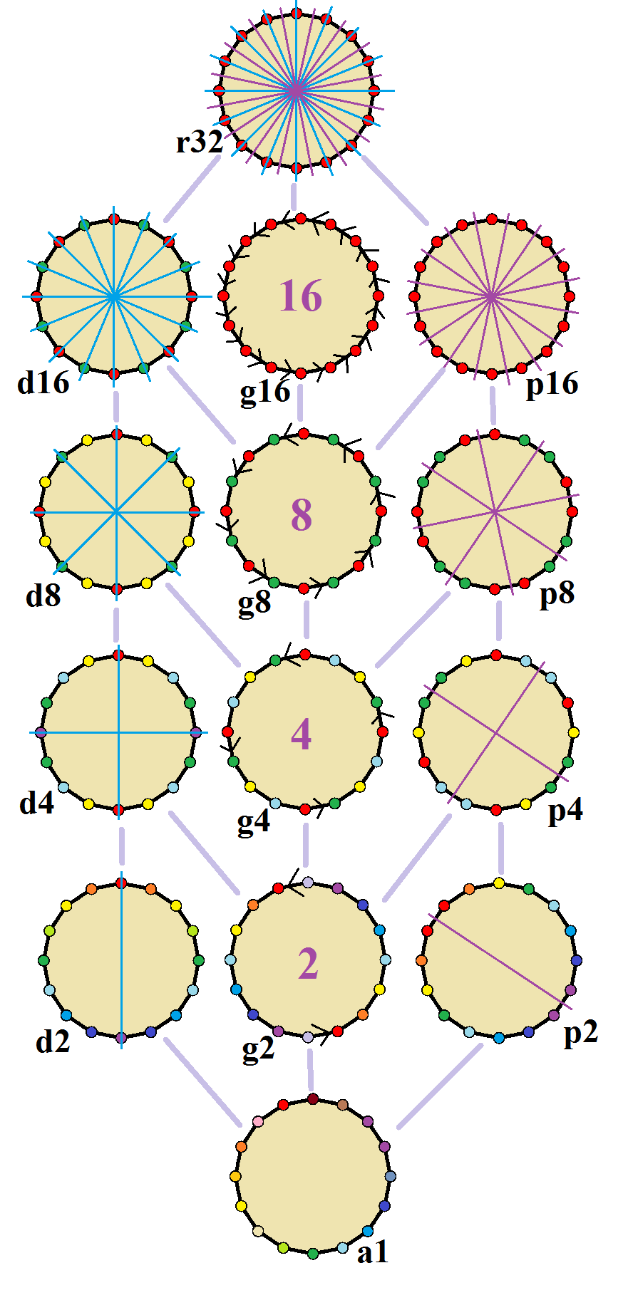 그림 | {16/1} 또는 {16} | {16/2} 또는 2{8} | {16/3} | {16/4} 또는 4{4} |