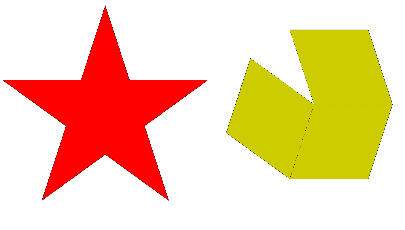 깎은 작은 별모양 십이면체는 표면에서 정십이면체처럼 보이지만, 24개의 면(깎인 꼭짓점에서 나온 12개의 오각형과 깎인 오각별로 겹쳐진 12개의 면)을 가지고 있다.
