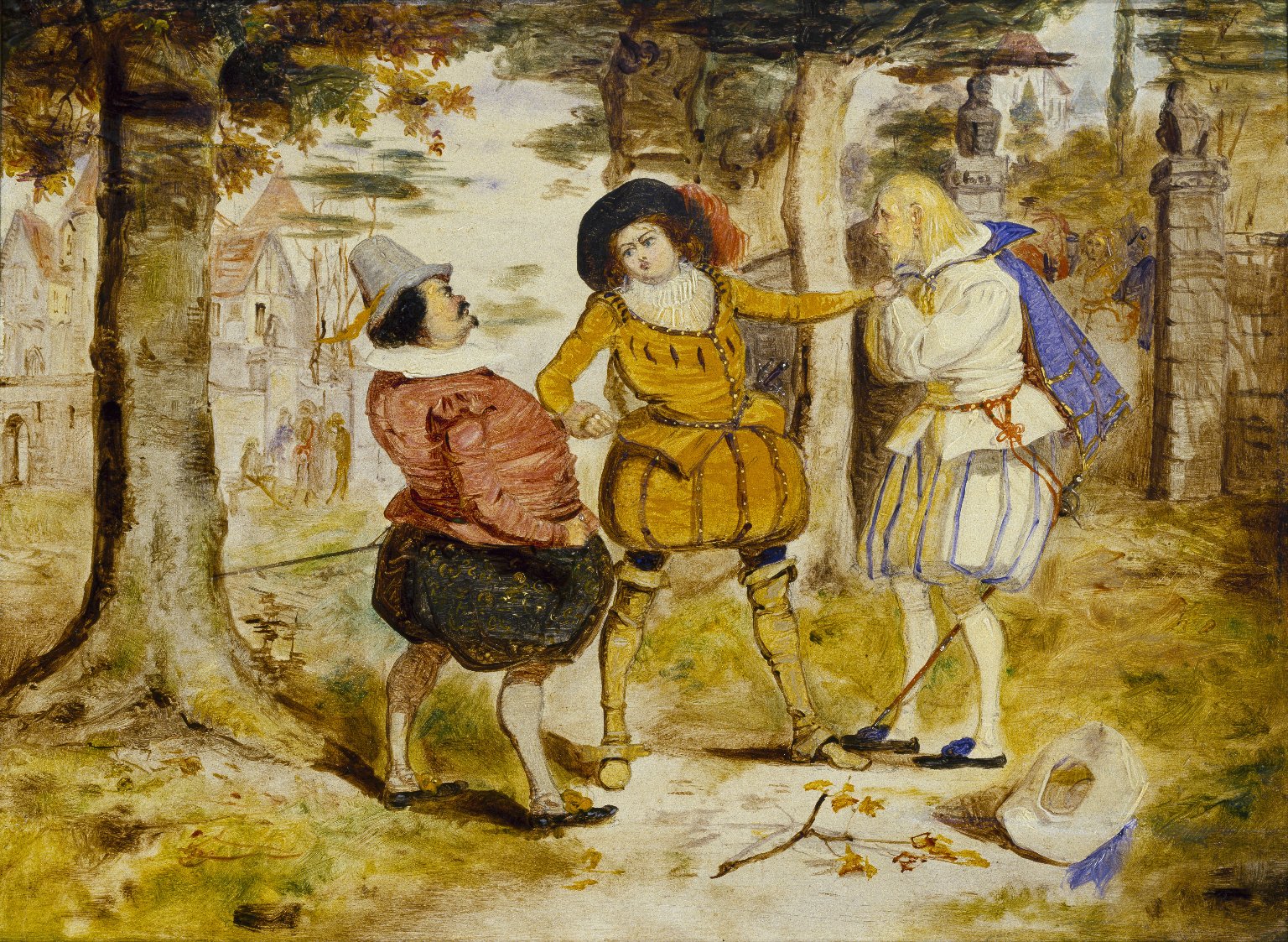 올리비아에게 구혼하기 위해 앤드루 경은 토비 경의 꾐에 빠져 세사리오(바이올라)에게 결투를 신청한다. 하지만 세사리오와 앤드루 경은 둘 다 싸움을 못한다는 것을 알고 있었기에, 이 결투는 세바스찬으로 오해받은 안토니오에 의해 중단된다. 오시노의 장교들은 안토니오를 체포한다.[2] 한편, 앤드루 경은 세바스찬을 세사리오로 착각하고 공격하여 싸움이 벌어지고, 올리비아는 이 소동을 목격하고 토비 경, 앤드루 경, 파비안을 꾸짖는다. 이후 올리비아는 '세사리오'로 오해한 세바스찬에게 결혼을 요청하고, 둘은 교회에서 비밀리에 결혼한다.[2]3. 5. 재회와 해결