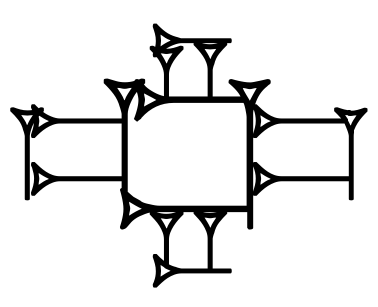 십자 모양의 이집트 상형 문자에는 가디너 Z9 – Z11 ("교차된 막대", "교차된 판자")가 있다.