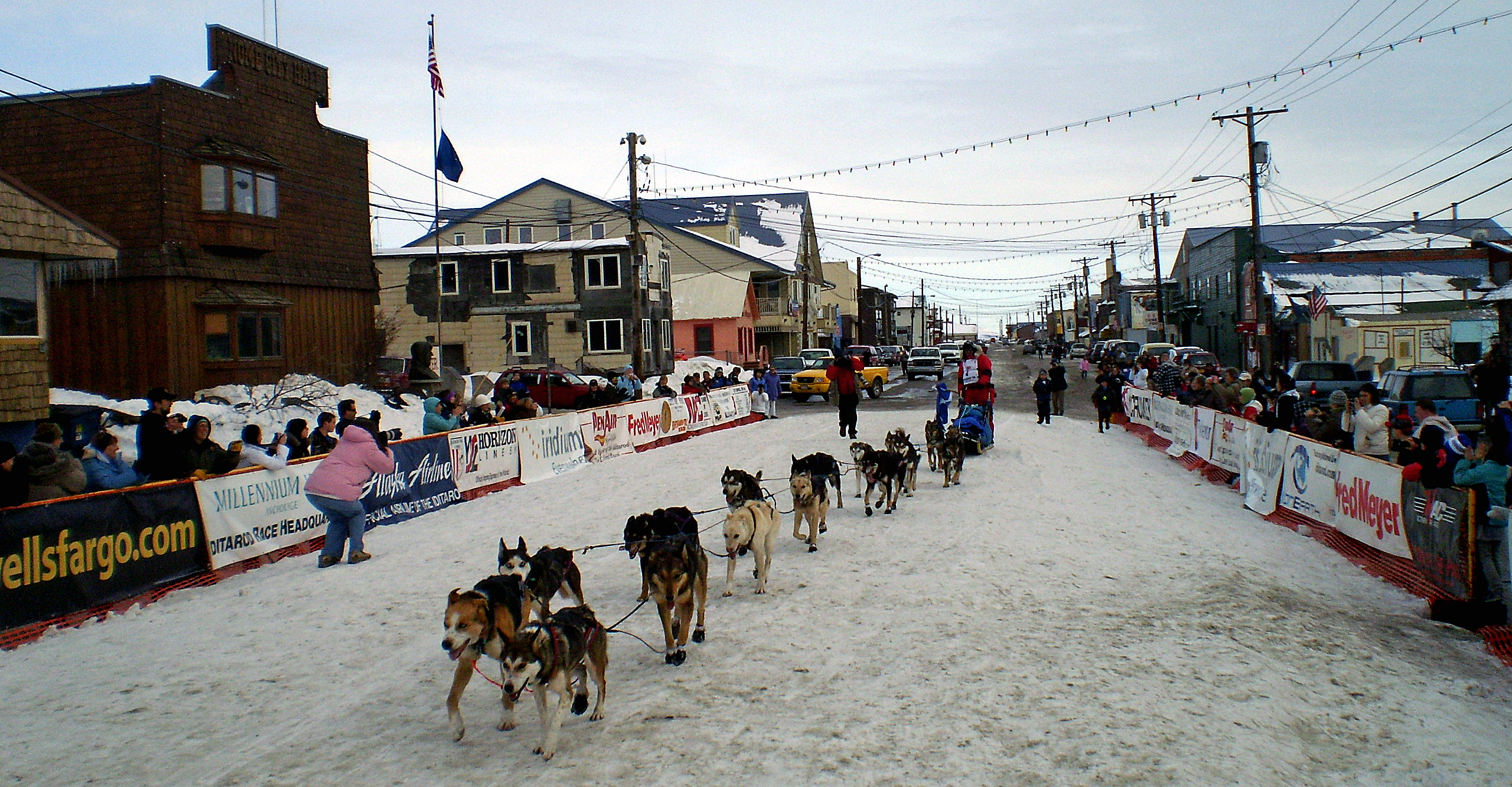 1925년, 디프테리아 발생이 알래스카주 놈을 덮쳤을 때, 놈에는 감염된 사람들을 치료할 혈청이 없었다.[15] 네나나에는 혈청이 있었지만, 966km 이상 떨어져 있었고 개썰매를 제외하고는 접근할 수 없었다.[15] 네나나와 놈 사이의 마을들에 의해 개썰매 중계가 설치되었고, 20개 팀이 협력하여 6일 만에 놈에 혈청을 전달했다.[15]